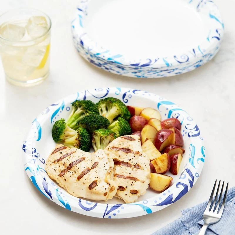 You may also like Disposable Paper Plates 10Inch 150Ct Strong Soak Proof Microwave Safe Party Use 19.41 USD Free shipping Serve food with ease using Great Value Everyday Plates. They're perfect for everyday use or for special occasions. These plates are extra-strong making them ready for whatever meal you make. Use these plates at your next barbecue, birthday party, while you're watching the game, at your next pool party, or any get-together. Their 10-inch size makes them suitable for barbecue dishes, snacks, dinner, lunch, desserts, and more. They're also soak-proof, microwave safe, and offer quick and easy disposal and clean-up for when the party is over. This package comes with 100 pleasantly decorated plates making it easy to stock up for any occasion. Easily serve food when you use Great Value Everyday Plates. Great Value products provide families with affordable, high-quality grocery and household consumable options. With our wide range of product categories spanning grocery and household consumables, we offer you a variety of products for your family's needs. Great Value Everyday Strong, Soak Proof, Microwave Safe, Disposable Paper Plates, 10 in, Patterned, 100 Count: Strong and durable Soak proof Microwave safe Convenient way to serve meals or snacks Ideal for everyday use or special occasions 10" diameter Count: 100 White with Pattern