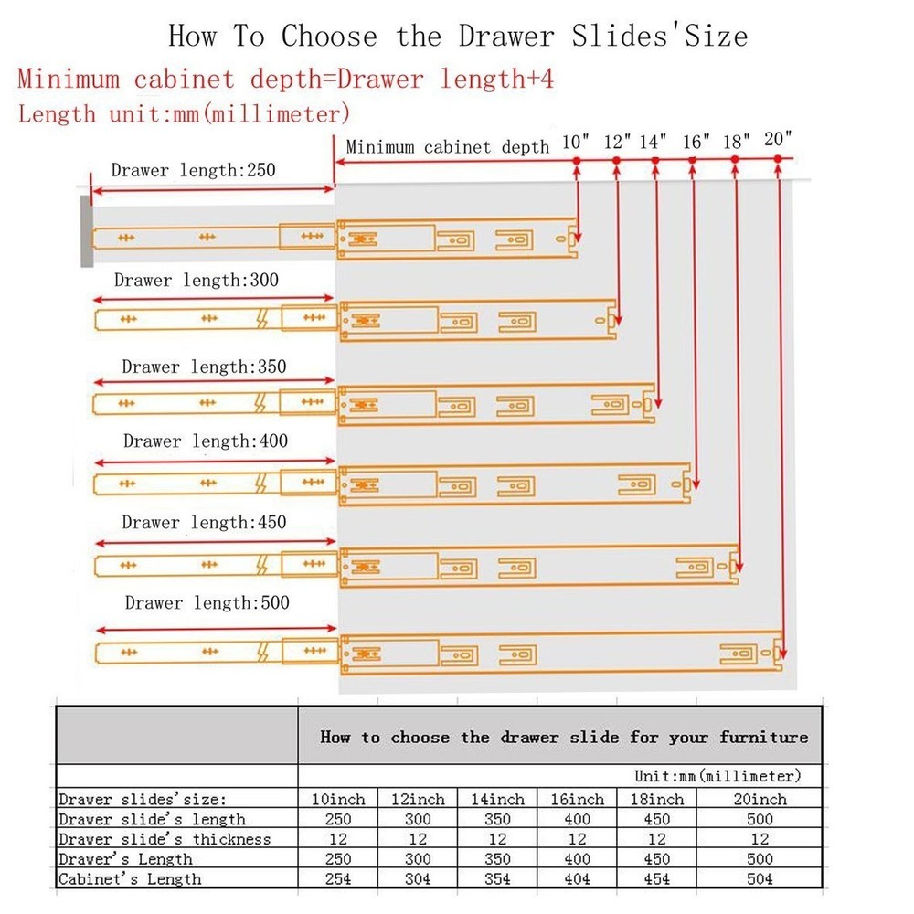 Full Extension Less Noise Ball Bearing Drawer Slides, 10 Inches, 1-Pair Product Details Style: 1 Pair Size: 10 Inch Brand: Zengest MPN: DSBL010 UPC: 663274082723 EAN: 0663274082723 Color: Black Material: Stainless Steel Brand: Zengest Finish Type: Steel Mounting Type: Side Mount Weight Limit: 100 Pounds Drawer Type: Side Mount Manufacturer: Zengest UPC: 663274082723 Number of Items: 1 Part Number: DSBL010 Item Weight: 1.1 pounds Product Dimensions: 10 x 1.8 x 0.5 inches Item model number: DSBL010 Is Discontinued By Manufacturer: No Size: 10 Inch Style: 1 Pair Finish: Steel Maximum Weight Capacity: 100 Pounds Batteries Included?: No Batteries Required?: No Date First Available: April 27, 2018 Made from high-grade cold rolled steel that is electron plated 100-Lbs max weight capacity Length: 10-inch (255mm) Smooth glide ball bearing drawer slides less noise at closing and opening Set includes 1 pair of slides and 12 screws