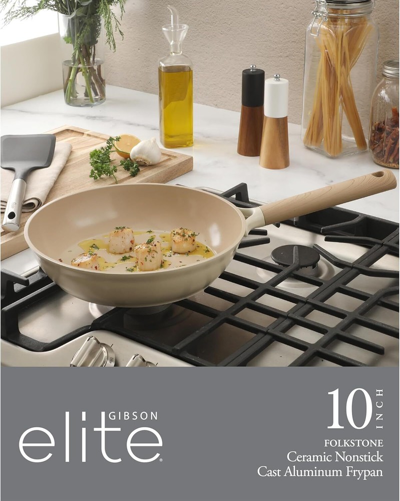 Free eBay listing template designed by dewiso.com 10 Inch Heavy Duty Cast Aluminum Fry Pan Cookware Non-Toxic Premium Ceramic Non Stick Frying Pan, Kitchen Egg Pan, Omelet Pan, Linen White W/Wood Handle, Induction Safe FREE AND FAST SHIPPING! About this item A BOX INCLUDES: One 10-inch ceramic nonstick frying pan. From one of GIbson's legacy brands, the Folkstone Ceramic Nonstick Collection applies the sophisticated designs of Gibson Elite tableware to versatile cookware for meal presentations that are both tasteful and flavorful. COOK LEANER AND HEALTHIER: Made without PFOA, PTFE, lead or cadmium, this pan is best for nonstick frying and searing. The ceramic nonstick coating requires less oil while it maintains easy food release and post-meal cleanup. STURDY CAST ALUMINUM FRYPAN: The heavy-gauge cast aluminum construction of this frying pan offers durability, perfect for everyday use. It is tough to hold up to and conduct heat evenly, but is lighweight enough for any flipping needs. INDUCTION-FRIENDLY: Ready to cook on induction, gas, electric, ceramic, halogen and glass stovetops FLIP WITH FLAIR: The soft-touch handle offers a comfortable grip for easy flipping and confident serving. Designed with a faux-wood look, the handle is a rustic accent that lends the warmth of the outdoors to a busy, indoor kitchen. Product We offer a 30-Day Return Policy on items which you are not completely satisfied with. You have the option for a full-refund or an exchange of the item. No returns are available on items shipped outside of the US . Shipping We offer Free Shipping to the US and ship within 2 business days of payment, usually sooner. We use UPS express shipping. That's why your products are usually delivered within 3 days . Contact We try our very best to make sure every customer is completely satisfied. If there's a problem , message us! We're happy to help. 24/7 live chat available.
