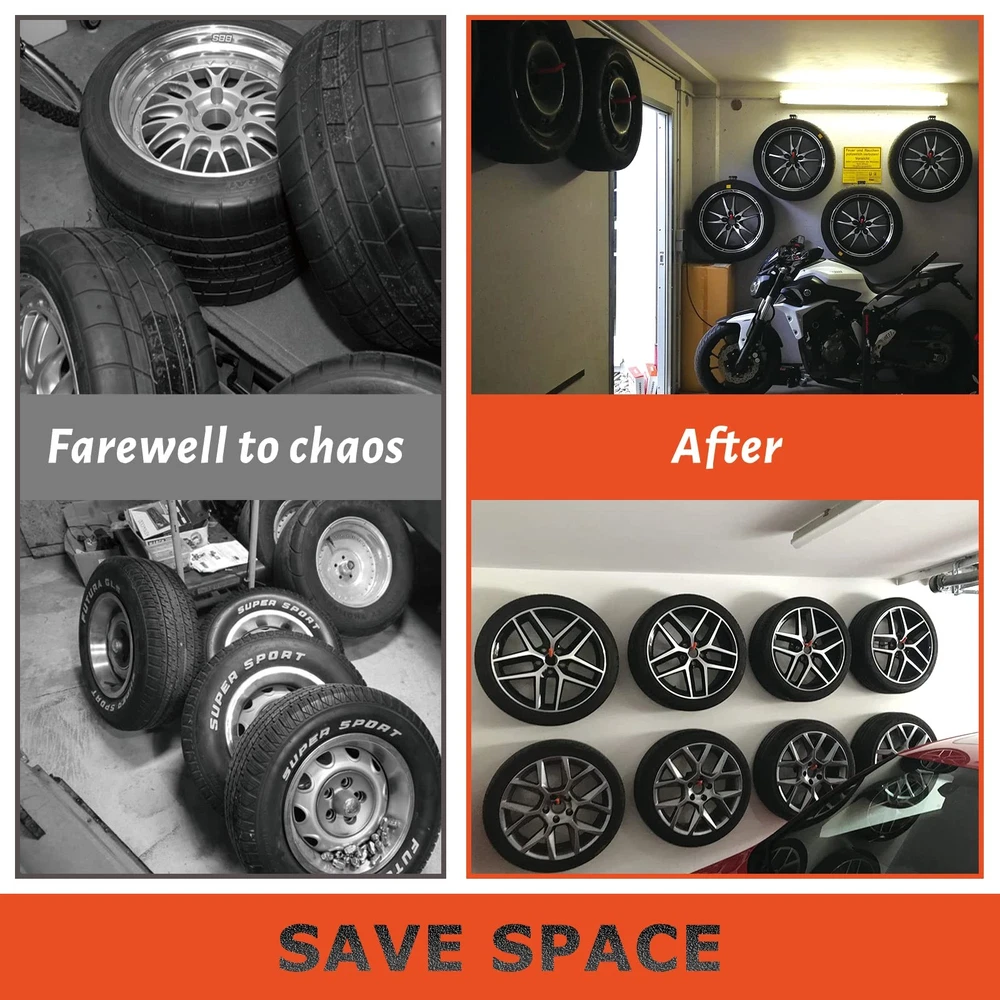 ▶【PREMIUM MATERIALS】10mm solid steel, black anti-rust powder coating, and black vinyl anti-slip coating ensure durability and tool protection for our heavy duty wall hooks. Suitable for indoor and outdoor use. ▶【PREMIUM DESIGN】10" extra-long arm single hook offers versatile storage, a great substitute for bulky tire storage racks. Concealed welding ensures clean aesthetics with no visible welding points. ▶【SUPERIOR STABILITY】Tested and proven to safely hold up to 88 lbs (40 kg), our garage storage hooks can be used as display racks for tires and wheels, as well as for storing bulky and heavy items like bike, ladder hanger, weedwacker, extension cord, and yard tools. ▶【SAVE SPACE】The garage wall hooks are easy to install (including high-quality installation hardware), maximizing your space and keeping your garage, basement, workshop, or organized. ▶【INSTALLATION TIPS】tire rack for garage is designed for high load capacity. For best results, we recommend installing them on studs, cement, concrete, or brick walls, rather than drywall. This will ensure the safety and stability of your items.