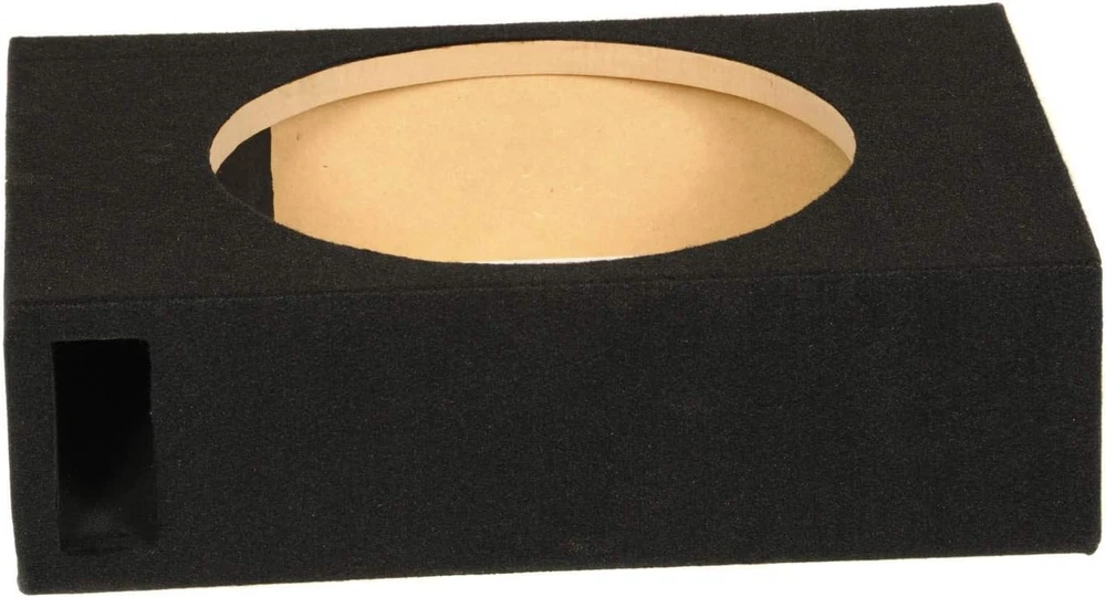 Single car audio subwoofer box designed to hold 10-inch subwoofer (not included) that blasts ecstatic sound so your vehicle rocks the streets Adds more bump to your ride with powerful bass and smooth audio; Single-chamber design effortlessly houses your single sub Ensures the safety of you and your speakers with a port vent design that helps the speakers stay cool and regulated Stands strong with solid MDF wood construction and blends into vehicle with charcoal carpeting; Dimensions (L x W x H): 5.25 x 18 x 14.5 inches Holds (1) 10-inch car audio subwoofer; Mounting depth: 4.5 inches; Cutout diameter: 9 inches; Volume: 0.53 cubic feet Product Description
