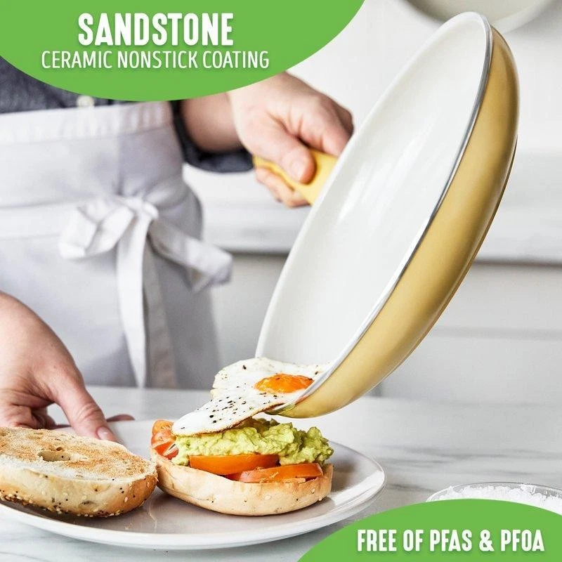 You may also like Non-Stick Aluminum Griddle Pan Heavy Duty Dishwasher Safe Metal Utensil Safe New 29.4 USD 30.95 USD Free shipping 5% off Pre-Seasoned Cast Iron Skillet 14 Inch Versatile Cooking Durable Oven Safe New 34.25 USD 36.05 USD Free shipping 5% off Nonstick Deep Fry Pan 11 Inch W/ Lid Bakelite Handle Easy Clean Oven Safe New 52.65 USD 55.42 USD Free shipping 5% off Non Stick Frying Pan 14" Family Skillet Dishwasher Safe Metal Utensil Safe New 37.15 USD 39.11 USD Free shipping 5% off Cast Iron Pizza Pan Preseasoned Skillet Multi Use Non Stick Kitchen Cookware 36.71 USD 38.64 USD Free shipping 5% off 11 Inch Non-Stick Stainless Steel Induction Deep Sauté Pan W/ Glass Lid New 52.99 USD 55.78 USD Free shipping 5% off Tri-Ply Stainless Steel Deep Fry Pan Induction Compatible W/ Glass Lid 4L New 53.47 USD 56.28 USD Free shipping 5% off Nonstick 10" Supreme Fry Pan All Cooktops Aluminum & Stainless Steel Easy Clean 44.93 USD 47.3 USD Free shipping 5% off Nonstick 5 Qt Saute Pan Eco-Friendly Induction Compatible Easy Clean Cooking New 28.46 USD 29.96 USD Free shipping 5% off 10 In Deep Frying Pan W/ Glass Lid Dishwasher Safe Durable Cooking Aluminum Red 47.5 USD 50.0 USD Free shipping 5% off Prairie Signature Cast Aluminum 12" Fry Pan W/ Nonstick Coating & Floral Accent 41.5 USD 43.68 USD Free shipping 5% off Toxin Free Nonstick Ceramic Frying Pan Skillet Durable Diamond Infused Cookware 47.4 USD 49.89 USD Free shipping 5% off The Greenlife Savory Ceramic Nonstick Yellow 10" open fry pan helps you get a grip? literally! Stay-cool Bakelite handles offer extra comfort that makes everyday cooking easier than ever. Best of all, our healthy ceramic nonstick coating releases even the stickiest foods effortlessly and wipes clean in seconds, no soaking required. The GreenLife Savory Yellow 10" frying pan brings diamond-powered performance to any stovetop. This diamond-reinforced ceramic nonstick coating delivers long-lasting performance and effortless cleaning and it? s made without PFAS, PFOA, lead, and cadmium to give you a better start for all your meals. The aluminum body adds a sleek, streamlined style to any kitchen, while the matching soft grip handle keeps things cool when you? re cooking. Reinforced with a wobble-free base for extra strength and even heating, this pan is safe for all stovetops except induction and oven safe to 350? F. Dishwasher safe. You may also like 2-in-1 Food Masher & Vegetable Peeler Nonstick Dishwasher Safe Kitchen Tool New 19.47 USD 20.49 USD Free shipping 5% off Kitchen Stainless Steel Vegetable Peeler Ergonomic Soft Grip Handle Easy Storage 17.54 USD 18.46 USD Free shipping 5% off Galvanized Steel Round Wash Tub Planter Bucket Rust Resistant Heavy Duty 17Gal 57.7 USD 60.74 USD Free shipping 5% off Perfect Peel Apple Peeler Slicer Corer Easy Clean Suction Base Kitchen Gadget US 24.99 USD 26.3 USD Free shipping 5% off Electric Tea Kettle 1.8L Half Circle Stainless Steel W/ Auto Shut Off Cordless 44.17 USD 46.5 USD Free shipping 5% off Electric Glass Kettle 1500W ProntoFill Fast Boil Auto Shut-Off LED Indicator New 25.66 USD 27.01 USD Free shipping 5% off Lightweight 15qt Pail & Strainer Combo Durable Easy Clean Storage Solution New 29.45 USD 31.0 USD Free shipping 5% off Cool Mist Humidifier 250 sq ft 15 Hour Run Time Whisper Quiet Auto Shut Off New 58.49 USD Free shipping Manual Potato Peeler Rotato Vegetable Fruit Peeling Machine W/ Spare Blades New 35.32 USD 37.18 USD Free shipping 5% off 4 in 1 Ultrasonic Cool Mist Humidifier Sound Machine Large Room Aromatherapy New 56.67 USD 59.65 USD Free shipping 5% off Ultrasonic Cool Mist Humidifier Auto Shut-Off Nursery Bedroom Allergy Relief New 46.66 USD 49.12 USD Free shipping 5% off Cast Iron Apple Peeler Clamp Hand Crank Peeling Coring Slicing Kitchen Tool New 53.76 USD 56.59 USD Free shipping 5% off
