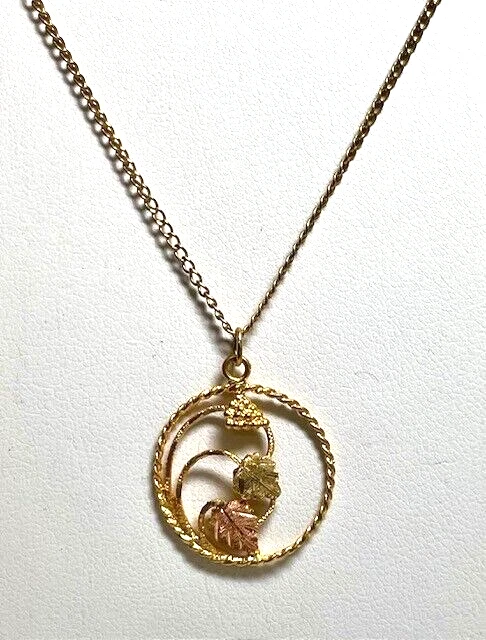 10K Black Hills Gold Leaf Round Pendant & 16" 12K Gold Filled Chain Necklace