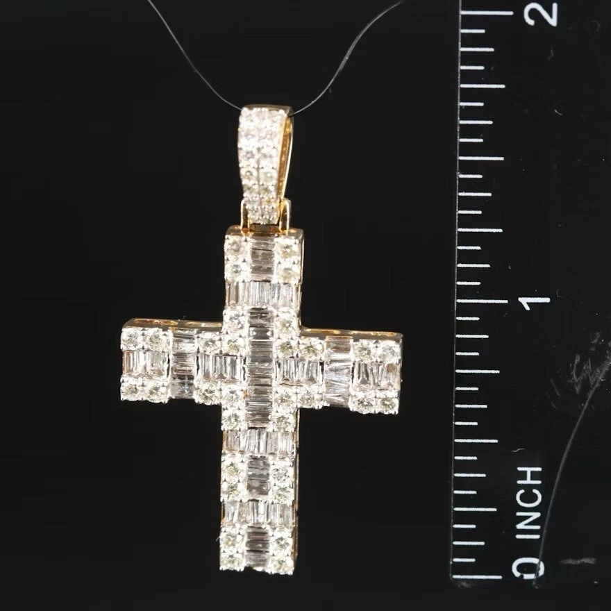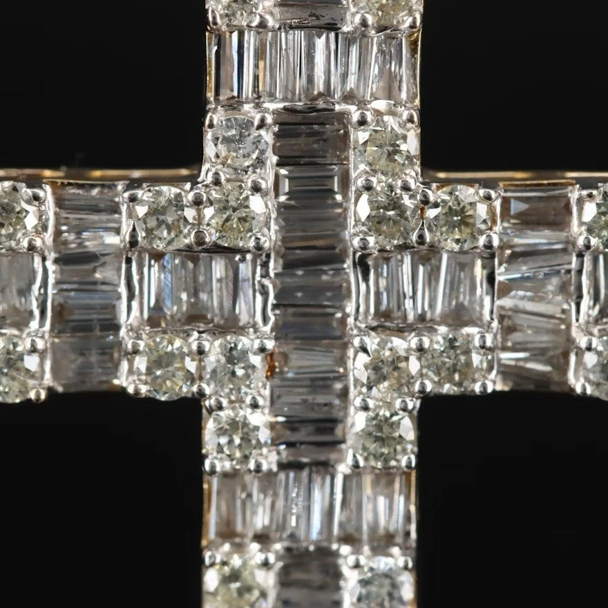 10K 3.04 CTW DIAMOND CROSS PENDANT 10K Yellow Gold 3.04 CTW Diamond Cross Pendant Signed MGM 1.70’’L x .25’’ W STUNNING Style: Christian, Religious Materials: 10K Gold Hallmarks: 10K MGM Total Weight (grams): 6.00 Primary Stone(s) Type: Diamond Primary Stone(s) Shape: Round Brilliant Cut Primary Stone(s) Dimensions: 1.00 – 2.00 mm Total Primary Stone(s) Carat Weight: 1.21 ctw Primary Stone(s) Color Grade: I – L Primary Stone(s) Clarity Grade: I1 – I2 Primary Stone(s) Inclusions: Surface Reaching Inclusions Secondary Stone(s) Type: Diamond Secondary Stone(s) Shape: Baguette Cut Secondary Stone(s) Dimensions: 2.50 × 1.25 – average Total Secondary Stone(s) Carat Weight: 1.83 ctw Secondary Stone(s) Color Grade: H – I Secondary Stone(s) Clarity Grade: SI1 – I1 LENGTH 1.70 ‘’ APPROX VERY GOOD VINTAGE CNDITION- PLEASE REFER TO PHOTOS I also combine shipping. - I typically will ship same or next business day! - Thank you so much for shopping with me! Please check out my store, I list new jewelry everyday!