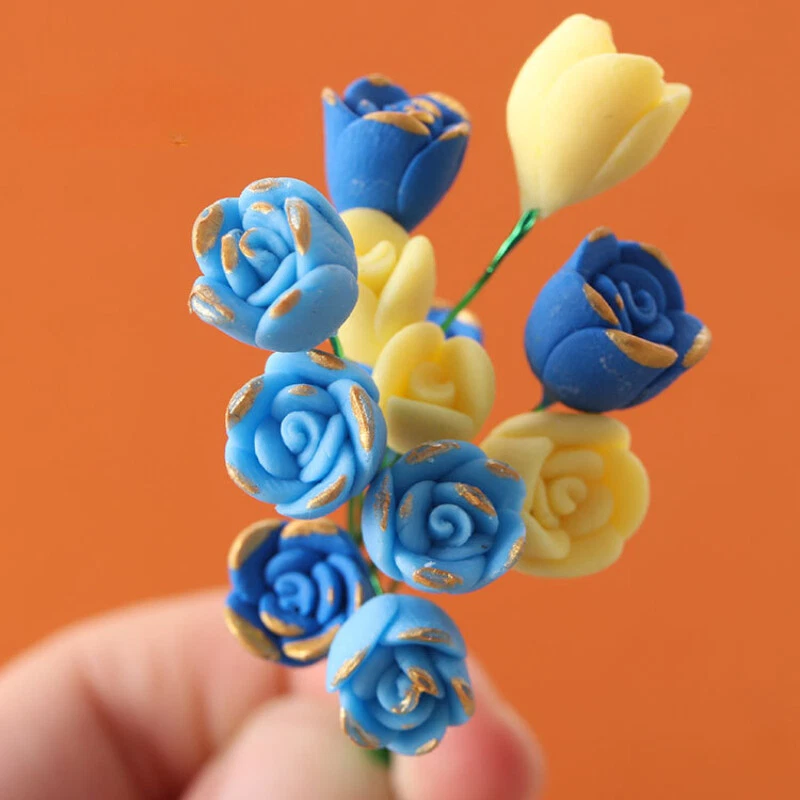 Description - Material: Clay+Metal - Size(L*W*H): flower head size 1.0CM (0.39 inch) - The package includes: 10PC*Flowers Does not include other decorations