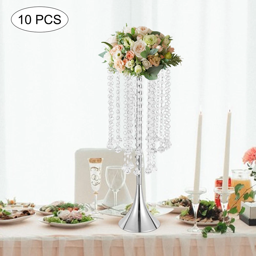 10PC Gold Flower Vase Centerpieces Table Decor Display 55.6cm for Wedding Party Description If you need some great flower vases to build a romantic wedding, a creative party, or a fantastic celebration, our product will be your best choice. Equipped with acrylic pendants with hand-strung beads, this flower vase can spice up the dull decor and create an eye-catching and dreamy atmosphere. And it uses high-quality iron and acrylic material with various processes such as electroplating, making it durable and reusable. Key Features Durable and Reusable: Each flower vase is made of high-quality iron with various exquisite processes such as electroplating, polishing, drilling, and welding, making it hard, durable, and reusable. Hand-strung Beads: The natural dangling of these hand-strung, elaborate beads adds so much beauty and elegance to the vase, showing your guests your elegant taste. Elegant Appearance: Its trumpet shape design, simple and smooth streamlines, and charming acrylic crystal beads present its uniqueness, novelty, creativity, and delicacy, adding an extra aestheticism to the scenes you need to decorate. Fascinating Backdrop: The acrylic crystal beads design can present a shimmering effect and spice up the dull decoration, especially under the sunshine or light, making it ideal for displaying as a fabulous backdrop for weddings, birthday parties, and other occasions. Easy to Assemble: For its simple structure and all accessories we provide, you can assemble this product easily and quickly. Easy to Clean: Due to its iron material with polishing and electroplating process, you can use a soft cloth to clean and dry, which is very simple. Easy to Store: Due to the segmented design and 24.25 lbs of total weight, these flower vases are easy to carry and store. Buy with Confidence: We aim to provide high-quality products and services. If you have any problems, please feel free to contact us. We will reply and solve the problem for you as soon as possible. Detail Top Flower Plate: The top flower plate is designed with two circles and three bars, together with drilling and welding processes, making it stable and unique. Stable Base: Its enlarged trumpet-shaped base has a diameter of 5.6 inches with good stability so that the entire vase firmly on the ground even if there are many flowers on it. Application These flower vases are suitable for wedding aisle decors, wedding receptions, event centerpieces, lower road leads, and daily home decoration. You can use them for housewarming, anniversaries, birthdays, weddings, engagements, etc. Specification Color: Silver Shape: Trumpet Treatment: Electroplating, Polishing, Hand-strung, Drilling, Welding Material: Iron, Acrylic Beads Style: Romantic, European Number of Pieces: 10 Assembly Required: Yes Installation Type: Centerpieces, Tabletop Number of acrylic Pendants: 24 Number of Octagonal Beads: 16 (Inner Ring), 12 (Outer Ring) Top Diameter: 20cm/7.9inch (Each) Base Diameter: 14.2cm/5.6inch (Each) Flower Vase Height: 55.6cm/21.9inch (Each) Package Size: 35*35*25cm/13.78*13.78*9.84inch Net Weight: 11kg/24.25lbs Gross Weight: 12.5kg/27.55lbs Package Included 10Pcs* acrylic crystal Flower Vases All Accessories for Assembly Notes 1.Please note that flower balls are not included. 2.To extend its service life, do not use abrasives for cleanup. You can use a soft cloth to clean and dry. 3.Please allow the slight color difference caused by the shooting light and the 1-3cm error due to manual measurement. Please make sure you do not mind before you order. Payment Delivery details Terms of sales About us Contact us Payment We accept ebay payment 。 Fees such as import duties, taxes are not included in the item price or shipping costs. These charges are the buyer's responsibility. Delivery details Shipping: 2-9 working days to: USA Terms of sales We maintain high standards of excellence and strive for hundred percent customer satisfaction. Feedback is very important to us. We hope that you contact us immediately before you give neutral or negative feedback, so that we can address your concerns. It is impossible to address issues if we do not know about them! About us Your satis faction is our ultimate goal. We work hard to earn your trust and future business. Our certified technicians have tested each item before shipping. The unit comes with 1 year limited warranty on all manufacturing defects. a) If you receive a defective item, you may return it or ask for a discount. Please contact us within 14 days after you receive the package. b) What you returned must be intact and in its original packaging as re? u. Customer is responsible for shipping costs of the returned item. c) We will cover the cost of shipping back t with the shipping rate indicated in the registration page. We will send you a new unit or refund the full payment you paid. Thank you. Contact us Business Hour Business Hour: Monday To Friday: 8:30 AM to 5:00 PM (Beijing China time) Due to time zones, our reply to your questions may not be immediately. But within above working time, we will reply your email within 24 hours. If it's non-workdays, please kindly be patient and wait till Monday. Please contact us with ebay message. Please feel free to contact us if you have any questions. Monday To Friday: 8:30 AM to 5:00 PM (Beijing China time) Due to time zones, our reply to your questions may not be immediately. But within above working time, we will reply your email within 24 hours. If it's non-workdays, please kindly be patient and wait till Monday. Please contact us with ebay message. Please feel free to contact us if you have any questions.
