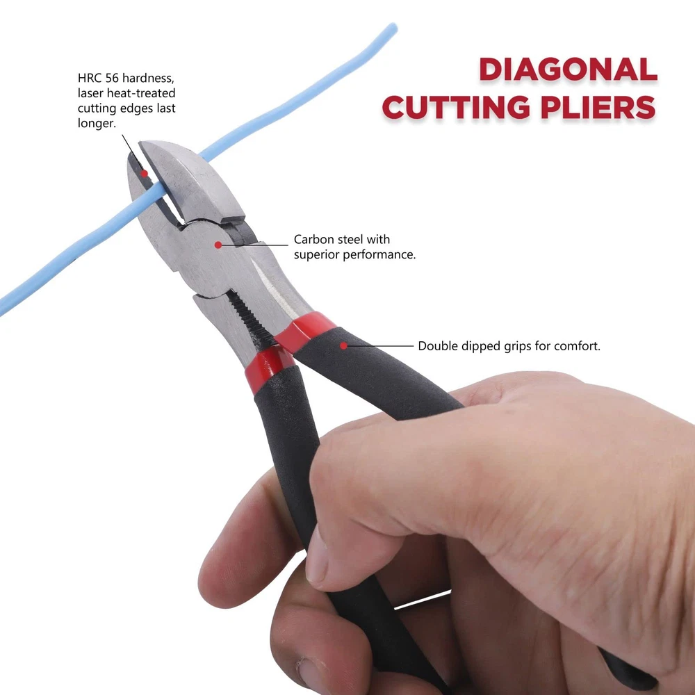 [DROP FORGED POLISHED STEEL] Durable alloy steel construction forged with a heat treatment to ensure reliable, long-lasting strength. [EASY TO ] Handy storage rack is made of durable ABS plastic. [COMFORT GRIP HANDLE] Double-dipped coating to ensure safe and secure non-slip handling. [CONVENIENT USE]Nine basic type pliers and adjustable wrench in multiple sizes for use on almost any object. [INCLUDE] Locking Pliers, Long Nose Pliers, Diagonal Pliers, Groove Joint Pliers, Linesman Pliers , mini pliers and Adjustable Wrench. [SERVICE] If you have any problem with our tool set or are not satisfied with the product, please feel free to us, we will do our best to serve you.