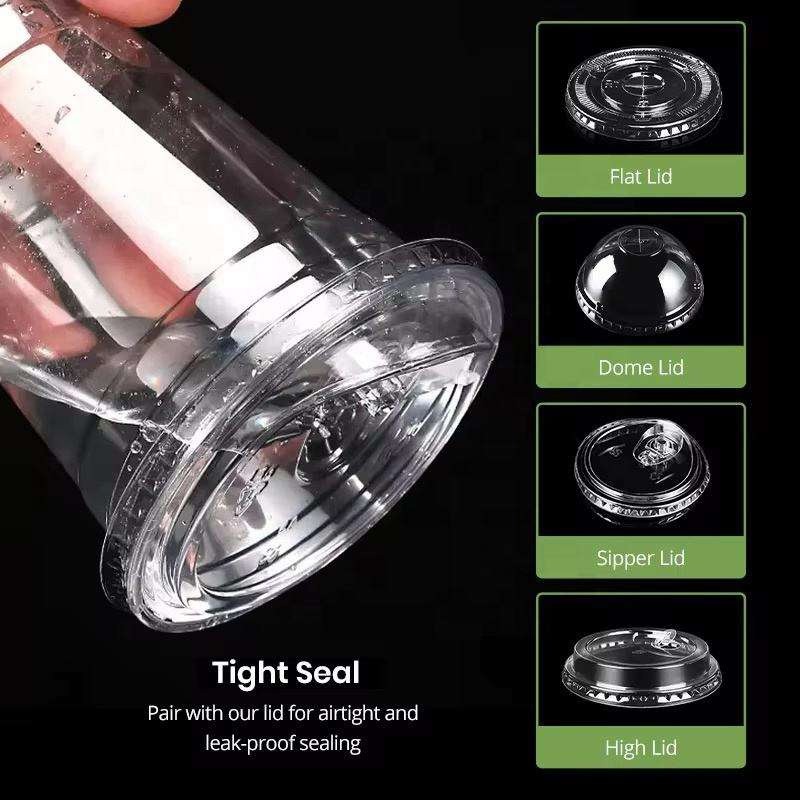 10PCS 16oz Clear Plastic Cups with Lids, Disposable Cups for Iced Coffee Bubble