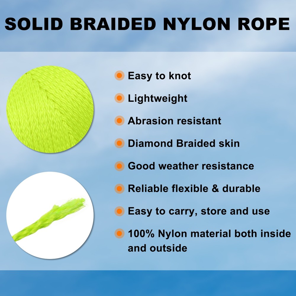 Document Solid braid utility rope is made of nylon, which has good abrasion resistance, is not easily broken by friction or wear, has good resistance to chemicals and corrosive substances, and is suitable for use in harsh environments.Unlike polyester fiber, nylon braided rope has stretchability to absorb energy, can withstand large weight and tension, and has a certain softness and elasticity, which is easy to carry, store and use. Nylon rope has good weather resistance and can be used outdoors for a longer time.Lightweight and affordable multi-purpose nylon rope, which can be used on your farm, boat, ranch, construction site or home, is perfect for camping, boating and any other indoor outdoor activities.Notice: Regularly check the surface of the nylon rope for obvious wear or cracks. If there is any wear, it should be replaced in time. It should be stored in a dry and ventilated place, away from direct sunlight and humid environment to avoid aging and hardening. 10PCS Solid Braid Nylon Rope 3/50 Inch 1000 Ft Utility Flag Pole Rope Yellow Solid braid utility rope is made of nylon, which has good abrasion resistance, is not easily broken by friction or wear, has good resistance to chemicals and corrosive substances, and is suitable for use in harsh environments. Unlike polyester fiber, nylon braided rope has stretchability to absorb energy, can withstand large weight and tension, and has a certain softness and elasticity, which is easy to carry, store and use. Nylon rope has good weather resistance and can be used outdoors for a longer time. Lightweight and affordable multi-purpose nylon rope, which can be used on your farm, boat, ranch, construction site or home, is perfect for camping, boating and any other indoor outdoor activities. Notice: Regularly check the surface of the nylon rope for obvious wear or cracks. If there is any wear, it should be replaced in time. It should be stored in a dry and ventilated place, away from direct sunlight and humid environment to avoid aging and hardening. Hot Item Payment 1.We accept eBay payment . 2.Payment must be received within 7 business days of auction closing. Shipping 1.We ship to your eBay or Paypal address. Please make sure your eBay and Paypal address is correct before you pay. 2.Items will be shipped within 1-3 business day when we received payment. 3.Delivery time depends on destination and other factors. Description Policy 10PCS Solid Braid Nylon Rope 3/50 Inch 1000 Ft Utility Flag Pole Rope Yellow Solid braid utility rope is made of nylon, which has good abrasion resistance, is not easily broken by friction or wear, has good resistance to chemicals and corrosive substances, and is suitable for use in harsh environments. Unlike polyester fiber, nylon braided rope has stretchability to absorb energy, can withstand large weight and tension, and has a certain softness and elasticity, which is easy to carry, store and use. Nylon rope has good weather resistance and can be used outdoors for a longer time. Lightweight and affordable multi-purpose nylon rope, which can be used on your farm, boat, ranch, construction site or home, is perfect for camping, boating and any other indoor outdoor activities. Notice: Regularly check the surface of the nylon rope for obvious wear or cracks. If there is any wear, it should be replaced in time. It should be stored in a dry and ventilated place, away from direct sunlight and humid environment to avoid aging and hardening. Hot Item Payment 1.We accept eBay payment . 2.Payment must be received within 7 business days of auction closing. Shipping 1.We ship to your eBay or Paypal address. Please make sure your eBay and Paypal address is correct before you pay. 2.Items will be shipped within 1-3 business day when we received payment. 3.Delivery time depends on destination and other factors.