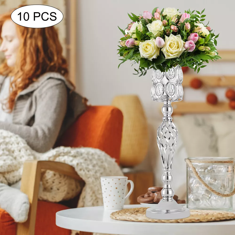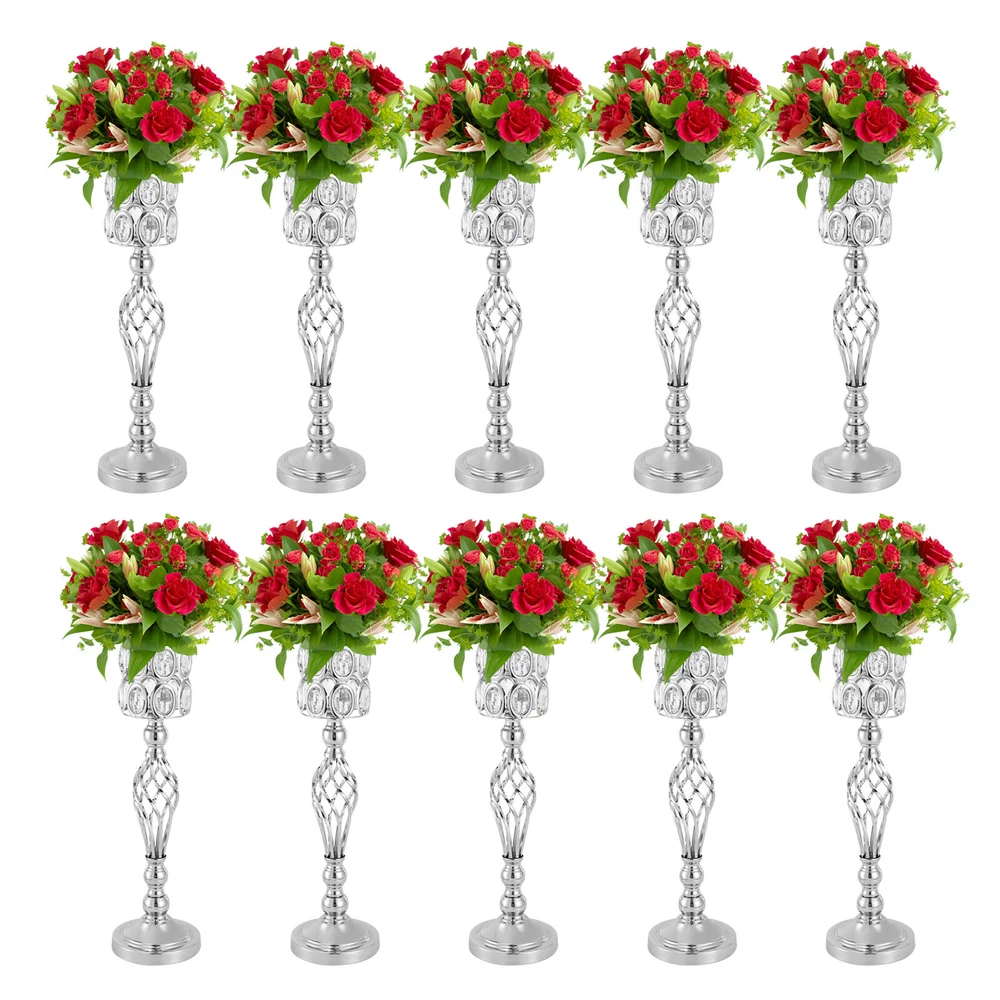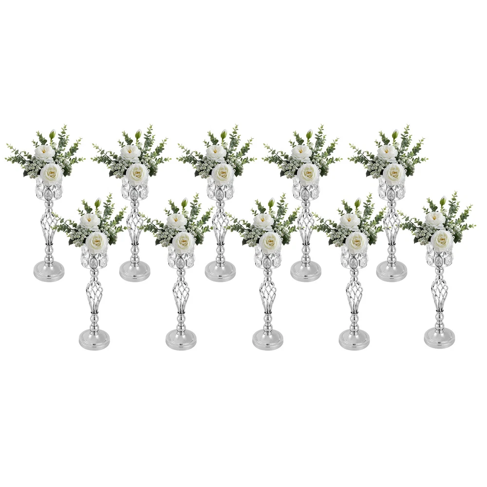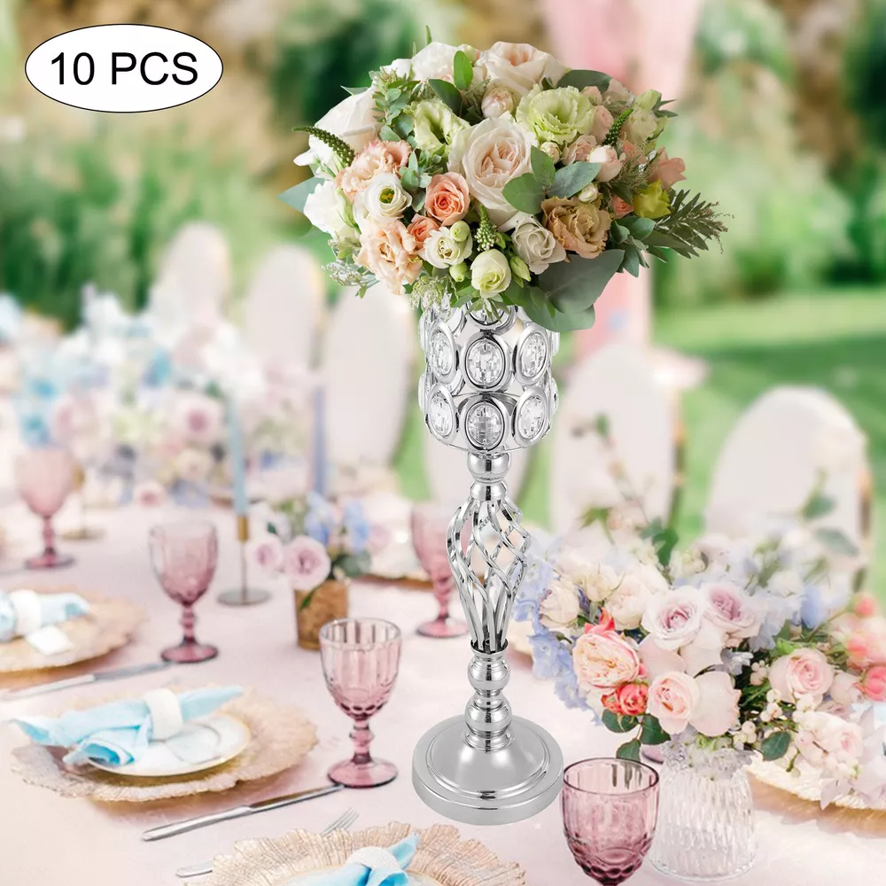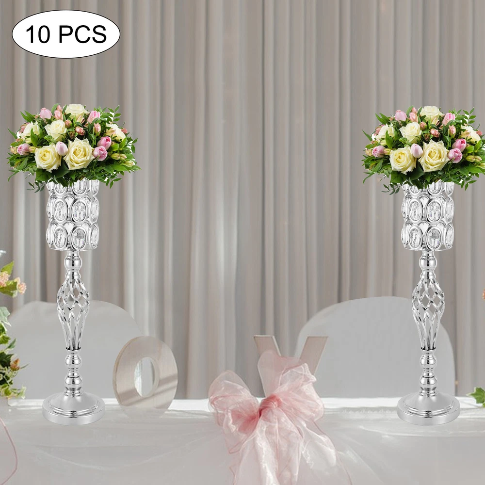 10PCS Crystal Flower Vase Stand Party Decor Metal Wedding Table Centerpieces