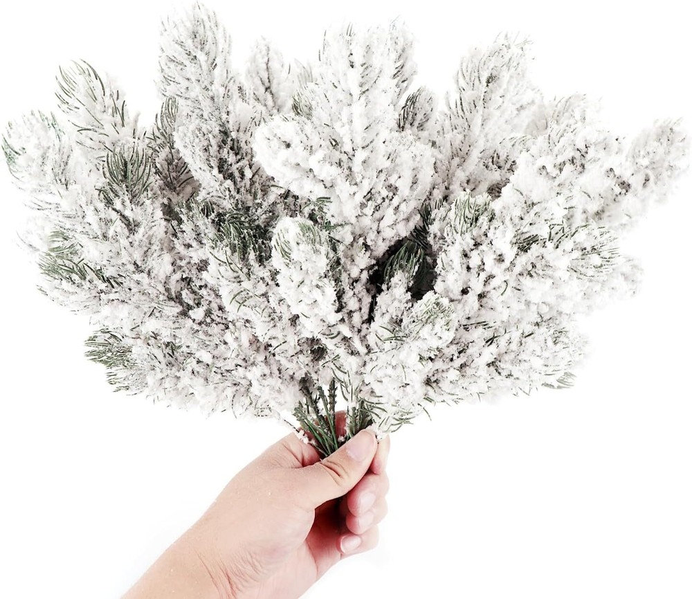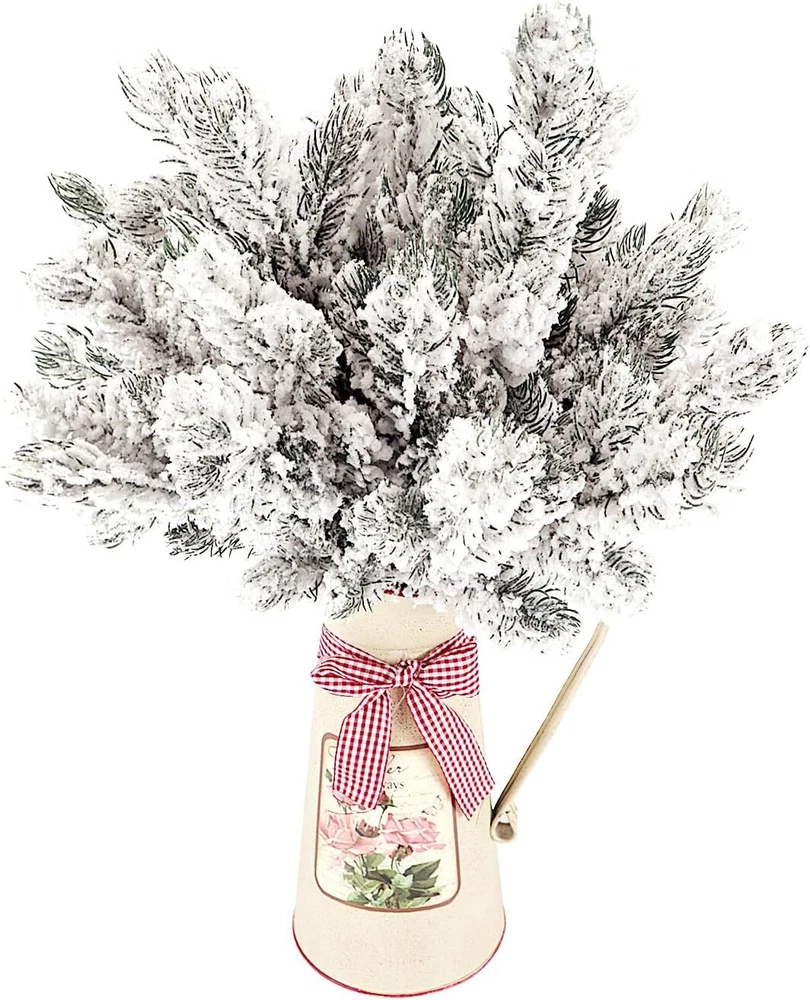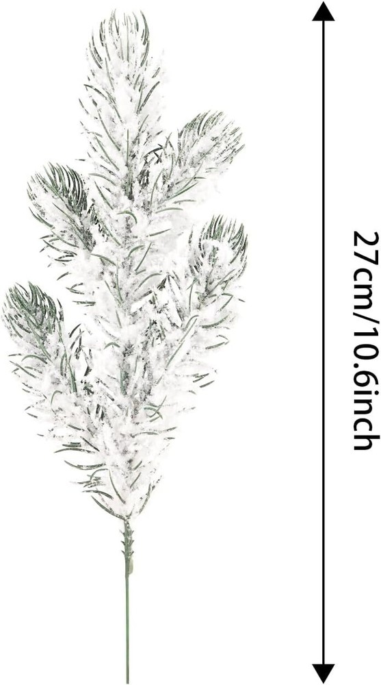Kesywale 10PCS Frosted Artificial Pine Needles Branches 10.6" Christmas White Product Details Brand: Kesywale Plant or Animal Product Type: 松,松枝 Color: White Material: Plastic Product Dimensions: 9"D x 1"W x 1"H Recommended Uses For Product: Home Decor Specific Uses For Product: Home Decor Indoor/Outdoor Usage: Indoor Package Information: Vase Occasion: Christmas,Wedding Number of Items: 10 Item Weight: 0.1 Pounds Container Material: Plastic Included Components: Arrangement Accessories Item Package Quantity: 10 Shape: Rectangular Unit Count: 10.0 Count Seasons: Winter Manufacturer: Kesywale Item Weight: 1.6 ounces Country of Origin: China Item model number: Pine Needles Branches01 Package Includes: You will receive 10 pieces white christmas artificial pine branches picks. Each christmas pine picks comes with 5 twigs on them. Great for indoor and covered outdoor use. Size Details: The fake winter pine branches measures approx. 27cm/ 10.6" long, made of plastic and wire. The snow flocked pine picks feel like the real thing! The realistic looking and feeling pine will add a touch of elegance to your winter decor this year. Perfect Design: These artificial snowy greenery pine picks stems are covered with white flocking. It adds bliss to your vase arrangements weddings, and centerpieces, etc. With this accessory, the creative ideas are versatile. Home Decor: The frosted pine branches picks are suitable for flower arrangement, vase filler, arts and crafts DIY, wedding favor, photo props and more. You can use them to decorate your Christmas tree, rooms and other places at home, or share them with others. Wide Applications: These white christmas pine tree branches make great addition to wreaths, garlands, mantels, Christmas trees, table centerpieces, place settings and so on. Use them in a pine wreath or garland to add more texture and color. Perfectly provide your Christmas themed craft with plenty of lush and green possibilities. 10 Pieces Frosted Artificial Pine Needles Branches 10.6 Inches Christmas Fake Snowy Pine Picks Twigs Winter Sprays Greenery Stems for Christmas Tree DIY Garlands Wreaths Crafts Home Holiday Decorations