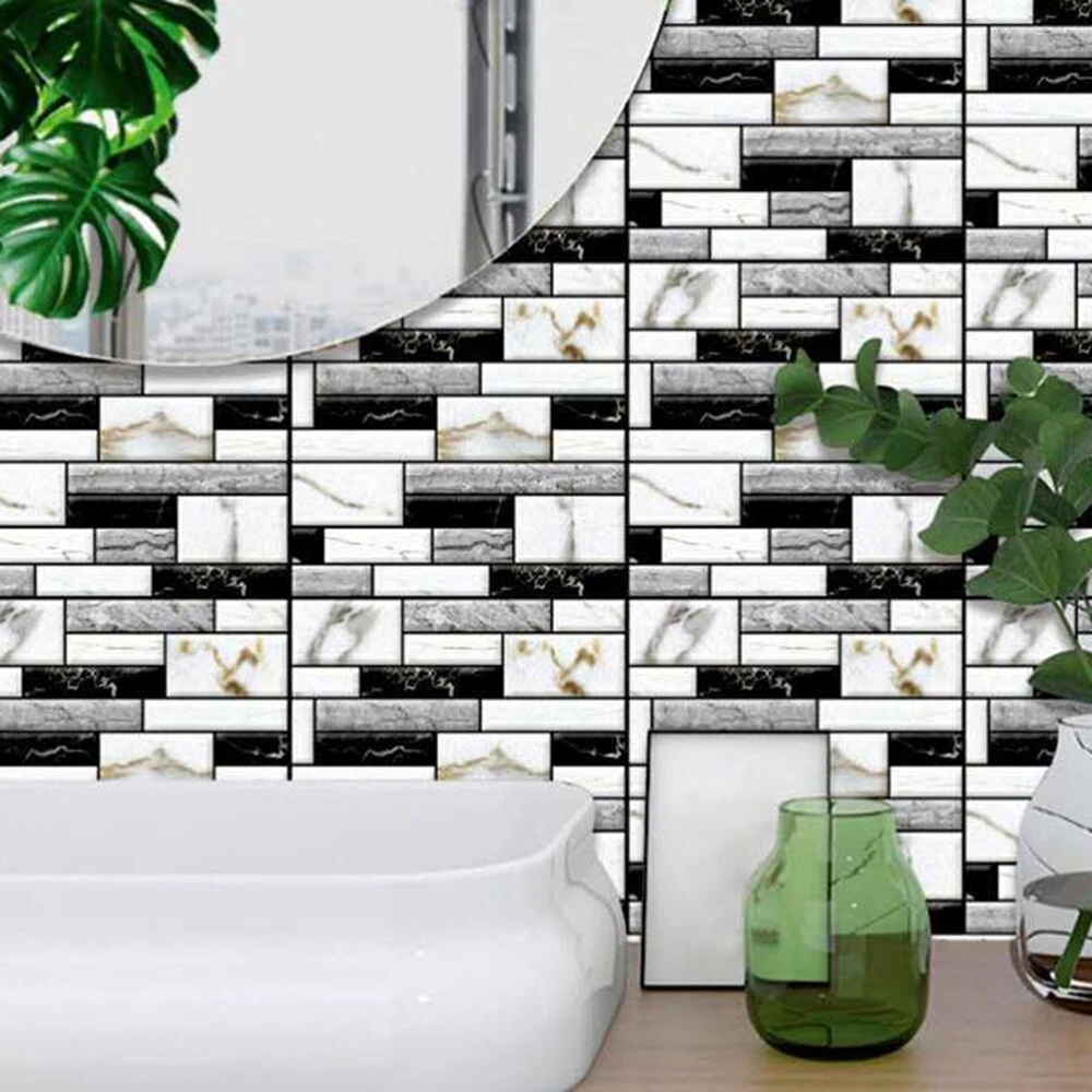 10PCS Self Adhesive Tile Wall Sticker Home Decor PVC Sticker Covers for1320 1: Three-dimensional decorative soft foam, anti-collision for children, care safe. 2: and environmental protection, non- odor-free, suitable for family safe home space. 3: lifelike, natural brick pattern effect, simple and modern style. 4: Free DIY, easy self-adhesive design, installation, casual collage, arbitrarily cut. 5: Compared wallpaper better noise reduction effect. Color: As Shown Material: PVC Package Contents: 10 x Self Adhesive Wall Sticker