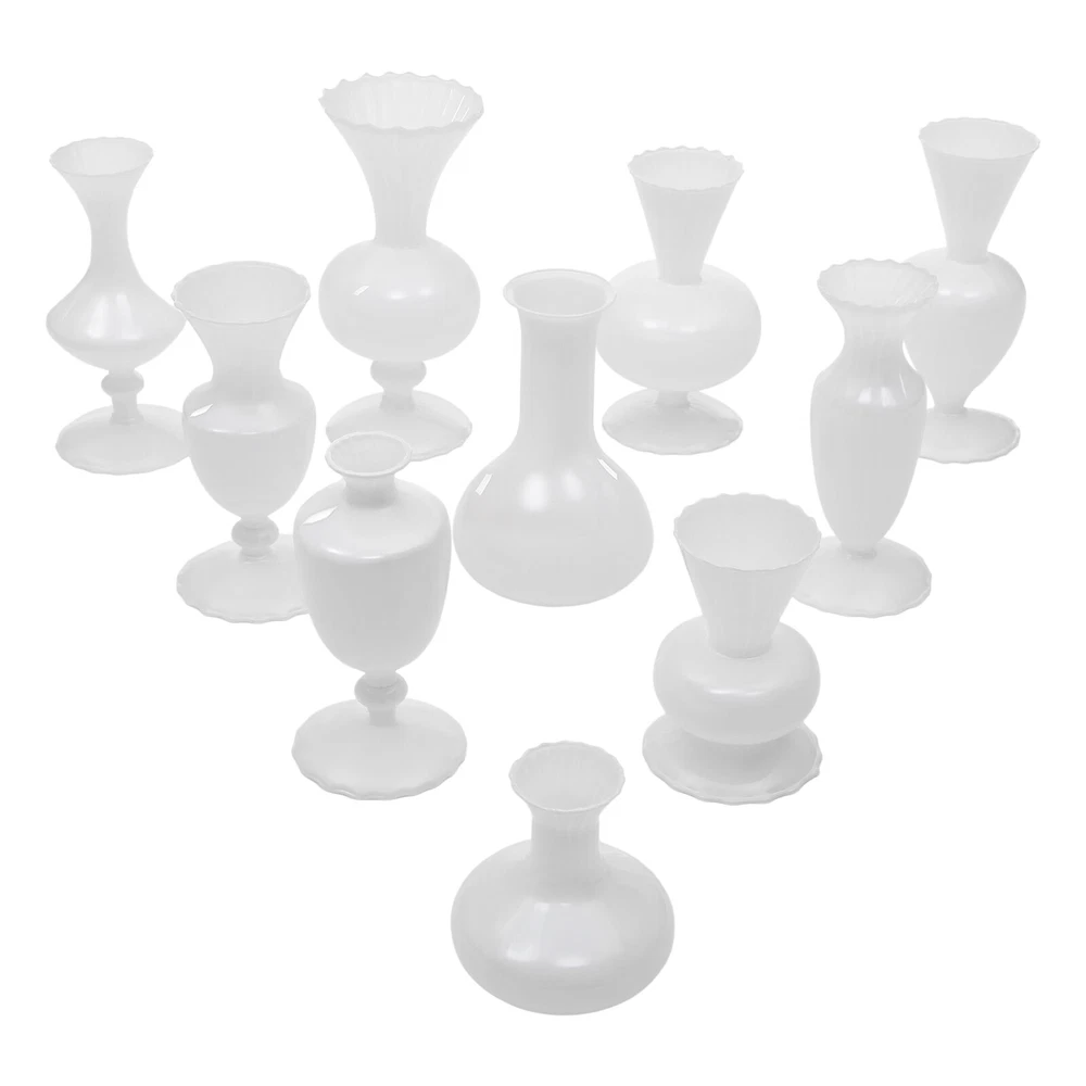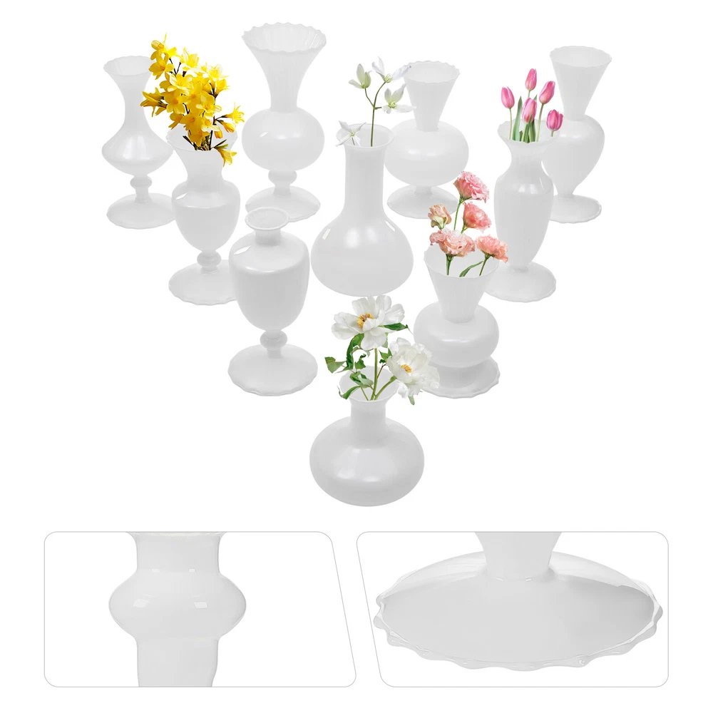10PCS Glass Vases for Wedding and home Decorations, Small Glass Vases Sets Description Weddings, graduations, birthdays, etc. are all memorable events in our lives that will become our precious treasures. With this glass vases set, your wedding and other important events will be even more wonderful. Our vases are made of premium glass, so they can be used for a long time and accompany you through various stages. 10 different styles in sufficient quantity can meet your home decorating needs, adding a touch of elegance and beauty to your home. Key Features Build to Last: High-quality glass makes the product durable and solid, so it remains beautiful and practical for a longer time. Strong Stability: The solid material, reasonable structure, and stable base provide this item with a strong bearing capacity, so you can use it safely without worrying about the fracture. Diverse Styles: The 10 different shapes, sizes, and styles enrich your visual experience, create a personalized background, add brightness to a dull event, and become good home decoration. Wherever it is placed, it is a beautiful scenery. Nice Decorations: You can place this product at the top of the booth as an excellent decoration for special days, creating an elegant atmosphere, especially for weddings. You can also put it on the table to relax your mood. Even if it hasn’t artificial flowers on it, it is still a very elegant decoration! High Cost-effective: 10 Pcs allow you to use different items, such as flowers, artificial flowers, and vines, on other occasions to decorate them freely and repeatedly, promoting the unity of style and fully meeting your needs. Labor-saving Cleaning: The smooth surface and simple structure make it convenient for you to clean with a wet towel and water. Easy to Carry and Store: Its small size and lightweight(4.41 lbs) make it easy for you to store and carry them anywhere. Ideal Gift: With an attractive appearance, this product is used as a gift for family, friends, and lovers to make their home more atmospheric and festivals more meaningful. Protective Package: To prevent the product from being damaged and bumped during transportation, we packed it with foam and cartons to protect your products to the maximum extent possible. Details Round Corners: Compared with traditional square corners, an arc design can better care for your skin. Flared Mouth: The flared mouth of the vase is not only aesthetically pleasing but also makes it easier for you to insert flowers, artificial flowers, and other decorations. Application Match with artificial flowers and other items, this product can be used in homes, restaurants, terraces, coffee shops, hotels, balconies, bars, clubs, Spa, candlelight dinners, holiday dinners, weddings, the background decoration of the studio, as well as any other special activities you would like to decorate. Specification Color: White Style: Modern Material: Glass Assembly Required: No Mount Type: Free Standing Number of Items: 10 Product Size(D*H): 11*9.5cm/4.33*3.74in, 9*17cm/3.54*6.69in, 9*16.5cm/3.54*6.5in, 9*17.5cm/3.54*6.89in, 9*17.5cm/3.54*6.89in, 9*7cm/3.54*2.76in, 12*18.5cm/4.72*7.28in, 9*19cm/3.54*7.48in, 9.3*20cm/3.66*7.87in, 10*22cm/3.94*8.66in Net Weight: 2kg/4.41lbs Gross Weight: 2.3kg/5.07lbs Package Size: 55*45*15.5cm/21.65*17.72*6.1in Package Included 10* Glass Vases Notes Please note that flowers and other decorations are not included. Please use a soft cloth to clean and dry it. Please do not use harsh chemicals or abrasives. It is better to add some rocks or floral foam to the inside to make the item more stable. For better results, we recommend using a small bouquet. Please pay attention to the size details, it may be smaller than you expect. Please check the size of our vases before purchasing a bouquet to prevent buying a larger or smaller bouquet. Please allow the slight color difference caused by the shooting light and 1-3 cm error due to manual measurement, and make sure you do not mind before ordering. Payment Delivery details Terms of sales About us Contact us Payment We accept ebay payment 。 Fees such as import duties, taxes are not included in the item price or shipping costs. These charges are the buyer's responsibility. Delivery details Shipping: 2-9 working days to: USA Terms of sales We maintain high standards of excellence and strive for hundred percent customer satisfaction. Feedback is very important to us. We hope that you contact us immediately before you give neutral or negative feedback, so that we can address your concerns. It is impossible to address issues if we do not know about them! About us Your satis faction is our ultimate goal. We work hard to earn your trust and future business. Our certified technicians have tested each item before shipping. The unit comes with 1 year limited warranty on all manufacturing defects. a) If you receive a defective item, you may return it or ask for a discount. Please contact us within 14 days after you receive the package. b) What you returned must be intact and in its original packaging as re? u. Customer is responsible for shipping costs of the returned item. c) We will cover the cost of shipping back t with the shipping rate indicated in the registration page. We will send you a new unit or refund the full payment you paid. Thank you. Contact us Business Hour Business Hour: Monday To Friday: 8:30 AM to 5:00 PM (Beijing China time) Due to time zones, our reply to your questions may not be immediately. But within above working time, we will reply your email within 24 hours. If it's non-workdays, please kindly be patient and wait till Monday. Please contact us with ebay message. Please feel free to contact us if you have any questions. Monday To Friday: 8:30 AM to 5:00 PM (Beijing China time) Due to time zones, our reply to your questions may not be immediately. But within above working time, we will reply your email within 24 hours. If it's non-workdays, please kindly be patient and wait till 