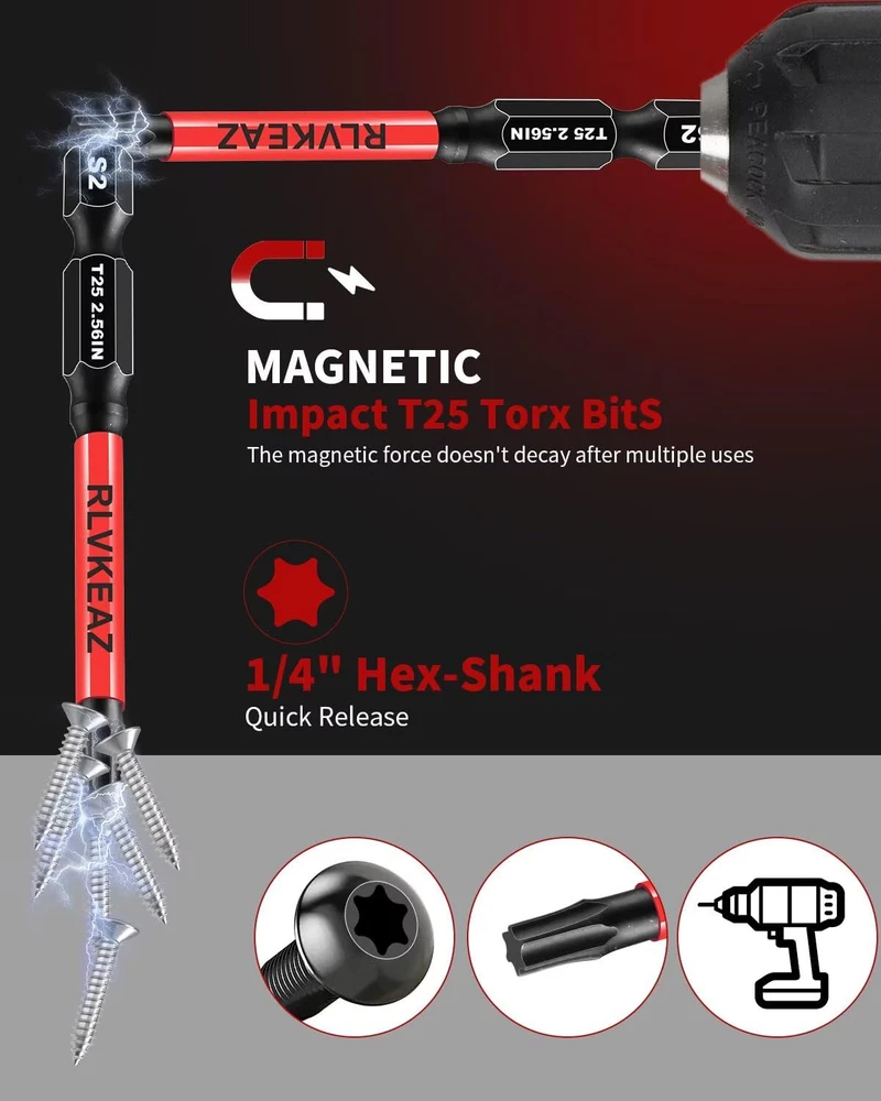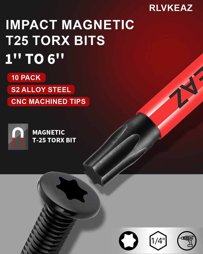 Store New Arrivals Add to Favorite View Feedback Contact 10-PCS T25 Torx Bits for Impact Driver, (1'' to 6'' Long) T-25 Star/Torx Bit Set Description Item model number T25 Torx Bits 1-Inch to 6-Inch Long Item dimensions L x W x H 6 x 4 x 0.46 inches Material Alloy Steel Product Dimensions 6 x 4 x 0.46 inches; 4.16 ounces Shank Type Hex Country of Origin China Style 10-PCS T25 Torx Bits 1'' to 6'' Long, T-25 Torx Bit Set Premium Solid S2 Steel Finish Type Manganese Phosphate 10-PCS T25 TORX BIT SET: Includes T25 torx bits in 1"-6" lengths (2x1", 3x2", 2x2.56", 1x3"/4"/6"). Star bits set with solid-core six-point design MULTI-LENGTH T25 BITS FOR TIGHT SPACES: Short T-25 Torx Bits (1"-2") widely used; 2.56"-6" torx bits reach deep screws in cabins. Star bits adapt to any angle INDUSTRIAL S2 STEEL TORX BIT SET: Torx bit set with heat-treated S2 steel resists bending/chipping. Built for heavy torque bits tasks like deck screws and metalwork MAGNETIC T25 TORX BITS FOR IMPACT DRIVER: T-25 torx bit locks screws securely. 1/4'' Hex Shank fits all 1/4" drive tools. Each drill bit has a clear model number mark STAR BIT SET WITH HOLDER: Organize all 10 torx bits set in the included holder. Quick access for workshops or job sites Product Description ABOUT US We offer the best prices around on high quality products. Our E-store includes media such as books, movies, music and games while offering electronics, toys, sporting apparel, clothing, tools, general home, garden items and more. SHIPPING We are always working hard to ensure your package arrives as soon as possible. Please understand that some factors like weather, high postal traffic, and the performance of shipping companies are outside of our control. We offer free shipping to the lower 48 states and ship within 2 business days of payment, usually sooner. We do not accept P.O. Boxes. Please provide a physical address. For shipping outside of the continental USA, we only use eBay's Global Shipping Program.The item is shipped to KY and then sent to the rest of the world. International customers are responsible for all duties and taxes. Continue to check out in order to calculate costs for shipping the item to your country. Messages regarding eBay's Global Shipping Program MUST be directed at eBay EXCLUSIVELY. RETURNS We offer a 30-Day Return Policy on items which you are not completely satisfied with. You have the option for a full-refund or an exchange of the item. No returns are available on items shipped outside of the USA. PAYMENT We accept PayPal. CONTACT US This page content is yet to come Please ad us to your favorite seller and visit again later Thank You CUSTOMER SATISFACTION We try our very best to make sure every customer is completely satisfied. If there's a problem, message us! We're happy to help. WE ACCEPT Copyright © 2021 AutoDS. | All Rights Reserved