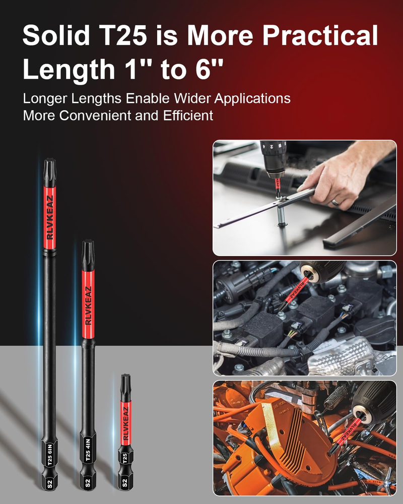 Type: Does not apply Style: 10-PCS T25 Torx Bits 1'' to 6'' Long, T-25 Torx Bit Set Premium S Product Dimensions: 6 x 4 x 0.46 inches; 4.16 ounces Material: Alloy Steel Brand: Does not apply UPC: 726084610422 Item model number: T25 Torx Bits 1-Inch to 6-Inch Long Finish Type: Manganese Phosphate Shank Type: Hex Country of Origin: China Item dimensions L x W x H: 6 x 4 x 0.46 inches gtin13: 726084610422