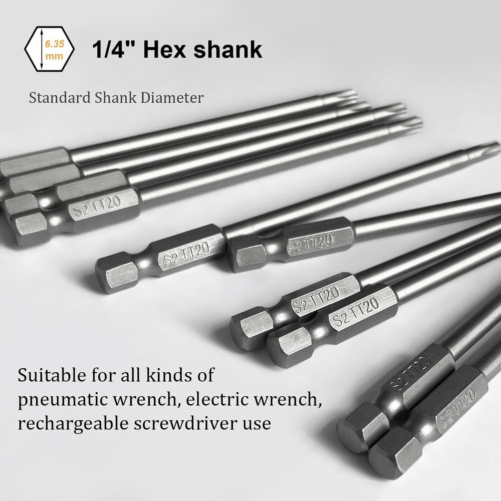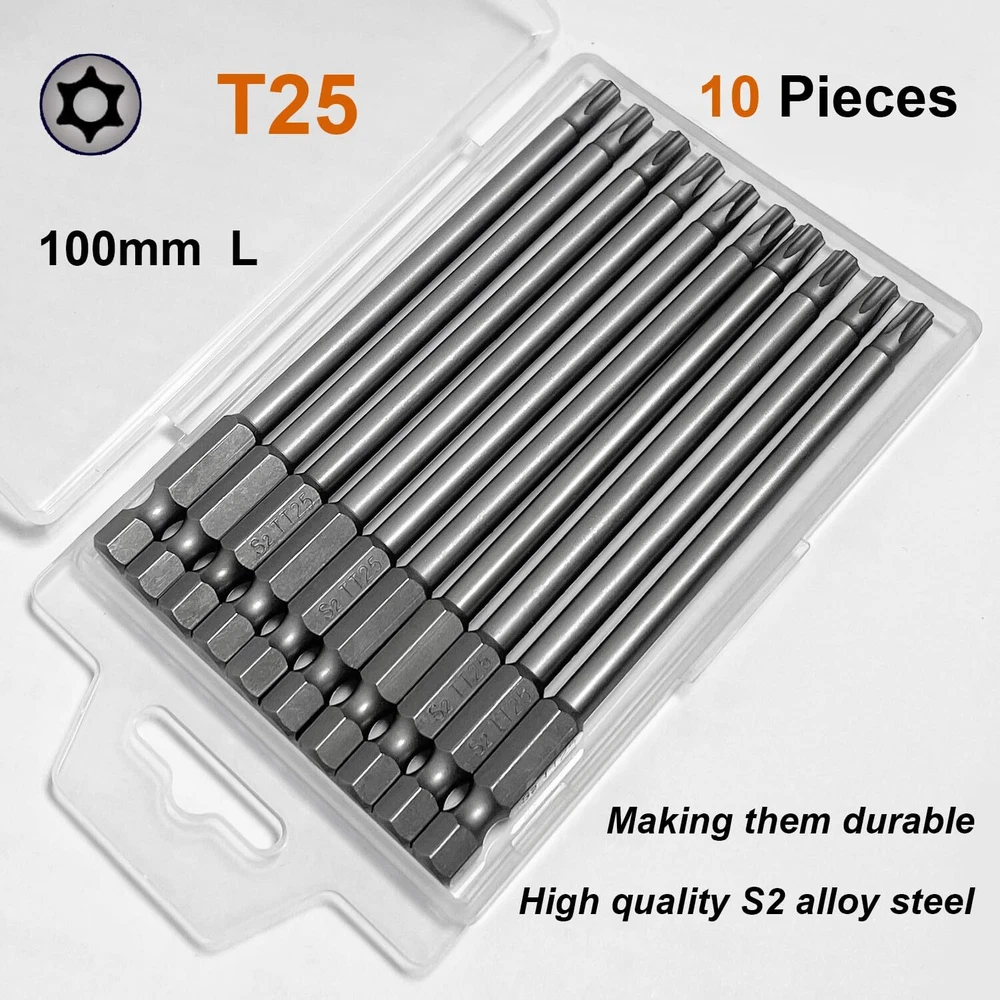10PCS T25 Torx Screwdriver Bit Sets, 4‘’Length Magnetic Security Torx Bits Set ( The Torx Drill Bit Set includes 10 pieces of T25 security Torx bits that are 4 inches (100mm) long. Made from selected S2 alloy steel material with vacuum high-frequency quenching treatment, these bits have high hardness and torque, making them durable and resistant to breaking. Implementing CNC integrated processing for Bits results in integral molding, leading to increased precision and standardization in size. This ensures excellent quality by using preferred materials. The high concentricity is ensured for better performance. Torx bits are magnetic and can easily connect with screws. If you're looking for a torx security bit set that is reliable and durable, look no further than the PTSLKHN 10PCS T25 Security Torx Bit Set. Order yours today and experience the benefits of having a high-quality torx bits set at your fingertips. Shipping We offer FREE shipping on all orders! We ship within Three business days of payment, usually sooner. We use a selection of shipping services such as UPS, FedEx, USPS etc. We only ship to the lower 48 states, no APO/FPO addresses or PO Boxes allowed. Local pickups and combined shipping options are not provided at this time. Return You can return a product for up to 30 days from the date you purchased it. Any product you return must be in the same condition you received it and in the original packaging. Please keep the receipt. Payment We accept payment by any of the following methods: PayPal Please pay as soon as possible after winning an auction, as that will allow us to post your item to you sooner! Feedback Customer satisfaction is very important to us. If you have any problem with your order, please contact us and we will do our best to make you satisfied. Contact Us If you have any queries, please contact us via ebay. We usually respond within 24 hours on weekdays. Please visit our eBay store to check out other items for sale! Thank you for shopping at our store.