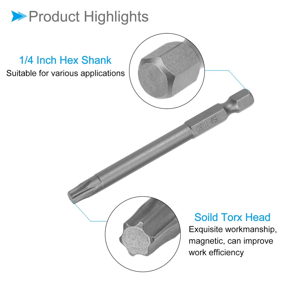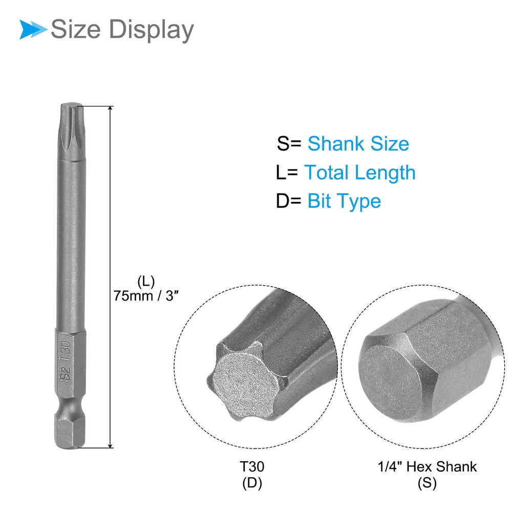 Document Attributes: *Screwdriver Bit Type: T30*Total Length: 75mm / 3 inch*Surface Treatment: Sandblasted*Material: S2What Is Included:* 10 Pieces x Torx Head Screwdriver BitsApplications & Features: -The screwdriver bit is made of S2 steel, which is wear-resistant and impact-resistant, with a hardness of up to 58HRC, and has been sandblasted and surface treated for durability.-These torx screwdriver bits feature a magnetic design that allows them to easily attract and hold screws. This feature ensures convenient installation by securely holding the screw in place before and after fastening, preventing accidental drops or misalignment.Useful Tips:-When using the torx head screwdriver bit, ensure a proper fit with the screw head to prevent stripping or damage. Apply appropriate pressure and torque to avoid over-tightening or under-tightening. Inspect the bit regularly for any signs of wear or deformation and replace if necessary. 10PCS T30 Torx Head Screwdriver Bit 3" Long 1/4" Hex Shank Magnetic Drill Bit Attributes: *Screwdriver Bit Type: T30 *Total Length: 75mm / 3 inch *Surface Treatment: Sandblasted *Material: S2 What Is Included: * 10 Pieces x Torx Head Screwdriver Bits Applications & Features: -The screwdriver bit is made of S2 steel, which is wear-resistant and impact-resistant, with a hardness of up to 58HRC, and has been sandblasted and surface treated for durability. -These torx screwdriver bits feature a magnetic design that allows them to easily attract and hold screws. This feature ensures convenient installation by securely holding the screw in place before and after fastening, preventing accidental drops or misalignment. Useful Tips: -When using the torx head screwdriver bit, ensure a proper fit with the screw head to prevent stripping or damage. Apply appropriate pressure and torque to avoid over-tightening or under-tightening. Inspect the bit regularly for any signs of wear or deformation and replace if necessary. Hot Item Payment 1.We accept eBay payment . 2.Payment must be received within 7 business days of auction closing. Shipping 1.We ship to your eBay or Paypal address. Please make sure your eBay and Paypal address is correct before you pay. 2.Items will be shipped within 1-3 business day when we received payment. 3.Delivery time depends on destination and other factors. Description Policy 10PCS T30 Torx Head Screwdriver Bit 3" Long 1/4" Hex Shank Magnetic Drill Bit Attributes: *Screwdriver Bit Type: T30 *Total Length: 75mm / 3 inch *Surface Treatment: Sandblasted *Material: S2 What Is Included: * 10 Pieces x Torx Head Screwdriver Bits Applications & Features: -The screwdriver bit is made of S2 steel, which is wear-resistant and impact-resistant, with a hardness of up to 58HRC, and has been sandblasted and surface treated for durability. -These torx screwdriver bits feature a magnetic design that allows them to easily attract and hold screws. This feature ensures convenient installation by securely holding the screw in place before and after fastening, preventing accidental drops or misalignment. Useful Tips: -When using the torx head screwdriver bit, ensure a proper fit with the screw head to prevent stripping or damage. Apply appropriate pressure and torque to avoid over-tightening or under-tightening. Inspect the bit regularly for any signs of wear or deformation and replace if necessary. Hot Item Payment 1.We accept eBay payment . 2.Payment must be received within 7 business days of auction closing. Shipping 1.We ship to your eBay or Paypal address. Please make sure your eBay and Paypal address is correct before you pay. 2.Items will be shipped within 1-3 business day when we received payment. 3.Delivery time depends on destination and other factors.