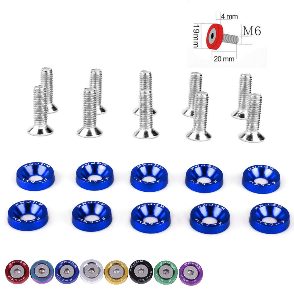 Specifications: Material : Aluminum,Stainless Steel Applicable: Universal Color: Black, Red, Blue, Purple, Gold Package :10pcs Bolts + 10pcs Washers Color: Black, R ed, Blue, Green, Purple, Silver, Gray (As Pictures Show) Product Features: • High-Quality Materials: Made from durable stainless steel and anodized aluminum, ensuring long-lasting performance and resistance to corrosion. • Universal Fit: Designed to fit most car models, making them versatile and easy to use for various automotive projects. • Stylish Design: The JDM style adds a sleek and sporty look to your vehicle, enhancing its overall aesthetic. • Easy Installation: Simple to install with basic tools, no special skills required. Package Includes: • 10 x Stainless Steel Bolts • 10 x Anodized Aluminum Washers