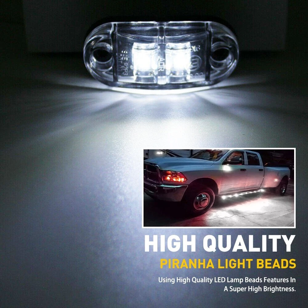 Manufacturer Part Number: CBD-W-SRY-10PCS2 Fit for 1: car trucks, trailers, horse trailer, travel trailer Number of Bulbs: 10PCS in total Bulb Fitment Code: 2.5inch Light Color: White Voltage: 12V DC Brand: Unbranded Function: Clearance lamp, side mark lamps, identification Lamps etc gtin13: Does not apply Dimension: 2.5" x 1.1" x 0.7" Fit for 2: boat trailer, RV, camper Pickups,Truck, SUV. Type: Side Clearance Marker Lights Manufacturer Warranty: 2 Year UPC: Does not apply To Fit: Sidelight