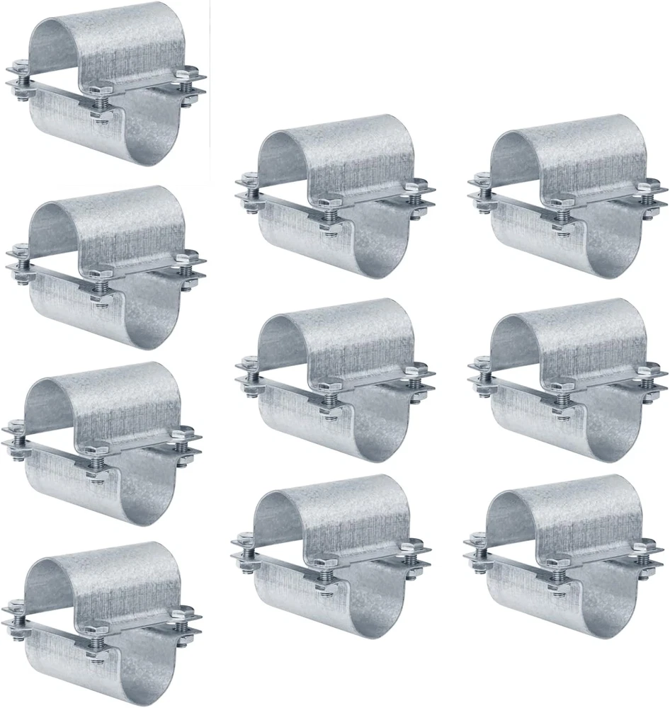1. These greenhouse cross connectors are super sturdy and easy to install! The hot-dip Al-Zn finish ensures rust resistance, and the included bolts make assembly a breeze. Perfect for reinforcing chain link fences or building greenhouse frames—holds up well under pressure. The slots allow flexible adjustments, and the steel feels durable. Great value for a 10-pack!
