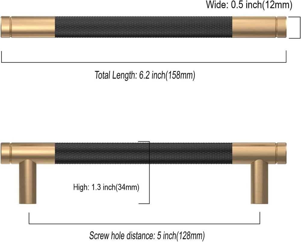 Product Description 10 Pack 5 Inch(128Mm) Matte Black And Champagne Bronze Cabinet Pulls Knurled Cabinet Handles Cupboard Handles Kitchen Cabinet Hardware For Cupboard Drawer Pulls Brand Assurance: We Take Your User Experience Very Seriously And We Are So Confident In The Quality Of Our Products That We Will Replace Them If There Is Any Quality Problem. Cabinet Hardware:10 Pack 5 Inch Matte Black And Champagne Bronze Cabinet Handles.Each Handle Is Individually Securely Packaged To Prevent Bumps And Scratches. Made Of Zinc Alloy With A Matte Black And Champagne Bronze Finish, The Pull Is A Heavy Duty Cabinet Pull That Is Strong. Standard Screw Spacing For Easy Installation And Replacement. Measurement: Hole Centers(Cc):5 Inch(128Mm); Overall Length: 6.2 Inch(158Mm); Width:0.5 Inch(12Mm); Projection:1.3 Inch(34Mm); Please Check The Size Of Handles You Require Carefully Before Purchasing. Wide Range Of Application: Furniture Pulls Are Ideal For Cabinets, Closets, Cupboards, Drawers, Dressers, Doors And Wardrobes. You Can Upgrade Your Home With Your Diy About Us We are a reputable seller with many years of experience selling on eBay. Our goal is to provide high-quality products and excellent customer service. Shipping Items will be shipped within 1-3 business days when we received payment. (Orders are not processed on weekends & holidays) Tracking information will be sent once item is shipped. Delivery time depends on destination and other factors Item is shipped to ebay address. Leaving correct address can minimize delay. For international shipping and shipping to Guam, Hawaii and Alaska, Please contact us before placing the order. International buyers please note: Import duties, taxes and charges are not included in the item price or shipping charges. These charges are buyer’s responsibility. We will try our best to reduce the risk of the custom duties. Local pick-up is unavailable at the moment. Contact Us We reply any email messages within 1 business / working days(off-duty at weekend). If you do not get a response from us, then please check your junk or spam mailbox. Our Business hours: Mon-Fri 9:00-18:00, UTC/GMT +8 hours. Please contact us either by clicking "contact seller" in the "purchase history" section or simply click "ask a question" at the bottom of this page. If you are unsatisfied with our item or service, please contact us before leaving any feedback. We are committed to resolve all issues in a friendly and satisfactory manner.