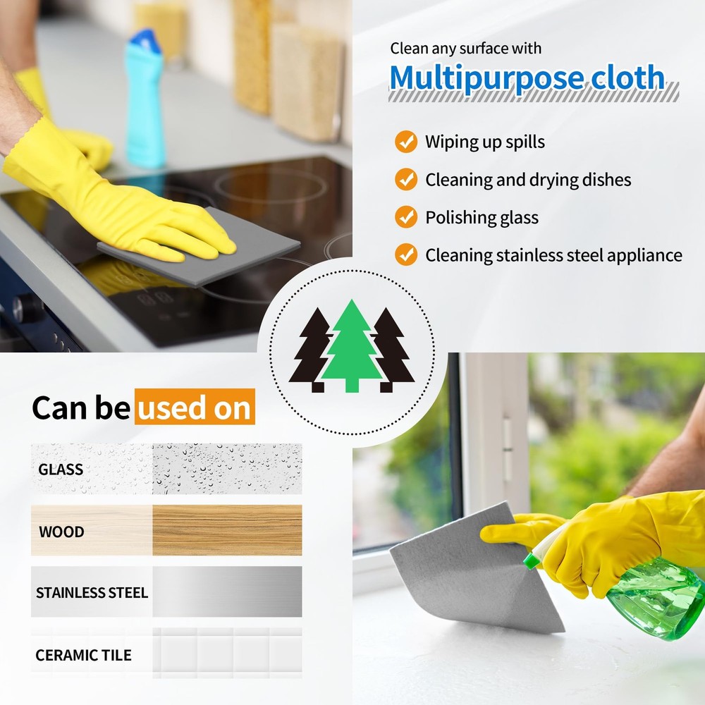 Highly Absorbent: Made from high-quality cellulose sponge cloths, our kitchen towels can effortlessly soak up liquids and effectively remove dirt and grime. They easily outperform both paper towels in the amount of liquid that they can absorb, and after being wrung out they are quickly ready to do the job again. Absorbent enough for drying, cleaning, scrubbing, or achieving any other household task. No Lint & No Scratch: These dish towels will not scratch your kitchenware, plates, pots, and pans. Fit well for removing dusting when wet and leaves no marks after wiping, suitable for most surfaces such as glass, pots, pans, countertops, sinks, car trim, windows, mirrors, stainless steel, marble, tile, and wood surfaces. Ideal for scrubbing or drying dishes, bathtubs, showers, kitchens, cups, bathrooms, offices, furniture cups, and plants. WASHABLE & REUSABLE: Our Swedish dishcloths are designed to withstand repeated use, a reliable choice for everyday kitchen cleaning. One 7"x6” Reusable Swedish Dish Cloth can replace up to 20 paper towels. Just throw it into a washing machine or dishwasher to clean. These dish rags remain fully intact after several weeks of heavy daily use, they will not tear, thin, or shred. Quick Dry & Odor Free: Comprised of cellulose and cotton, the kitchen dish cloths air-dry much more quickly than stinky sponges. Able to absorb 20 times their weight while maintaining lightweight and fluffiness, these hand towels are easy to wash and quick to dry. Natural materials dry faster and prevent the growth of odor even after using for a long time. Wide Application: Compared to other cleaning tools, our kitchen towels and dishcloths are an affordable option. It can be used multiple times before needing to be replaced, making it a cost-effective choice for you. Perfect gifts for housewarming events, birthdays, or holidays. These kitchen towels can be widely applied in your kitchen, living room, bathroom, windows, classrooms, and offices, and can be used to clean desks, tables, cabinets, bottles, and walls.