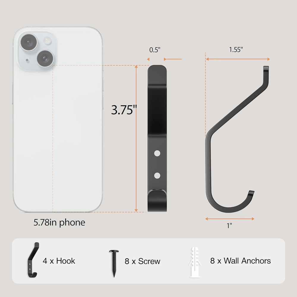 【Stainless】Made from High-quality Aluminum, ensuring durability and stability. Securely fixed and perfect for long-lasting use. 【Hold up to 20LB】Due to a precise mechanical design, the heavy duty hook can hold up to 20LB without falling. 【Easy Installation】No complicated or inconvenient installation, and our hooks require just two simple steps for setup. 【Widely Use Utility Hooks】 It can be used in bathroom, living rooms, bedrooms, and kitchens to hang clothes, hats, towels, keys, and bath items. Coat Hook for Hanging, 20LB (Max), Stainless Wall Hooks for Towel, Hat, Backpack, Key, Clothes, Wall Mounted Coat Hanger for Closet, Metal, Black, 10 Pack