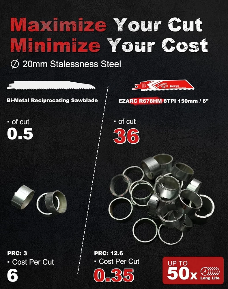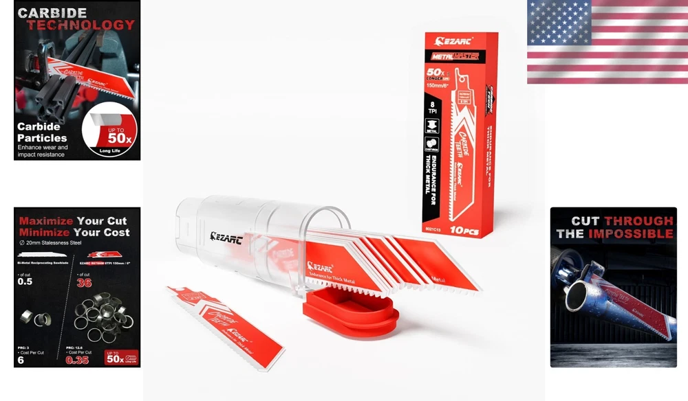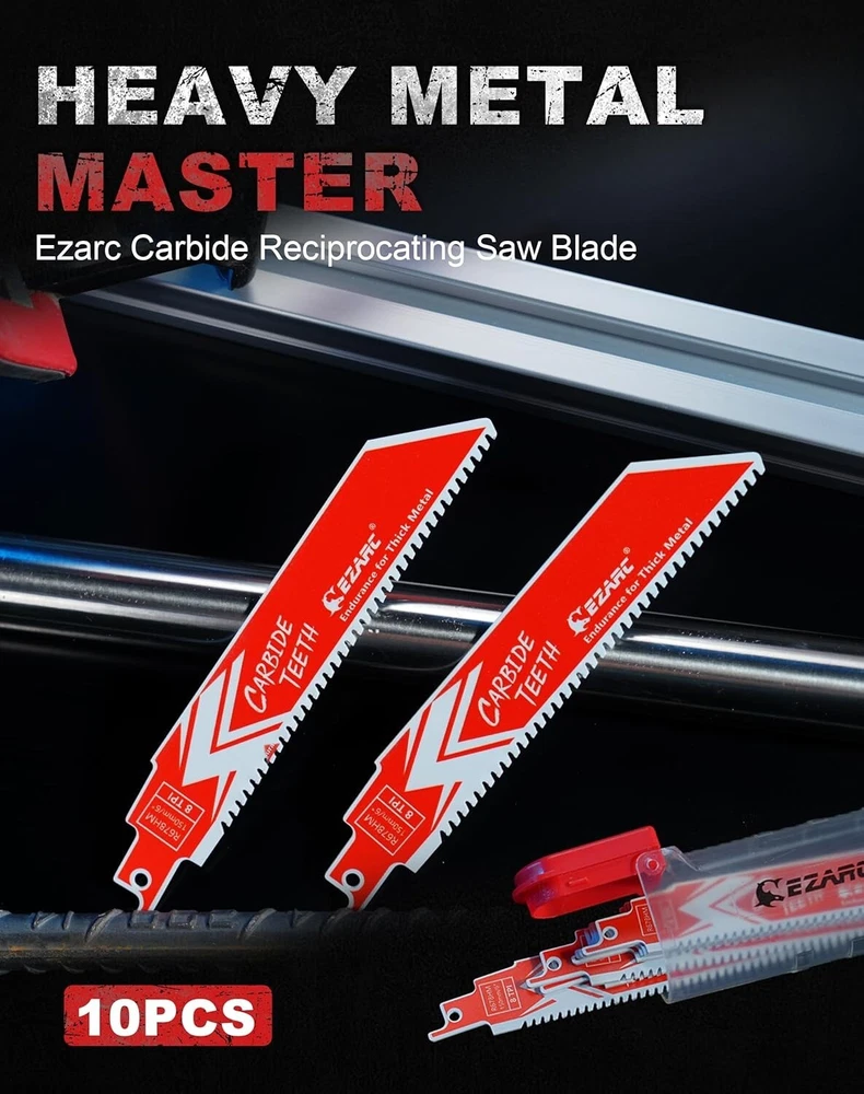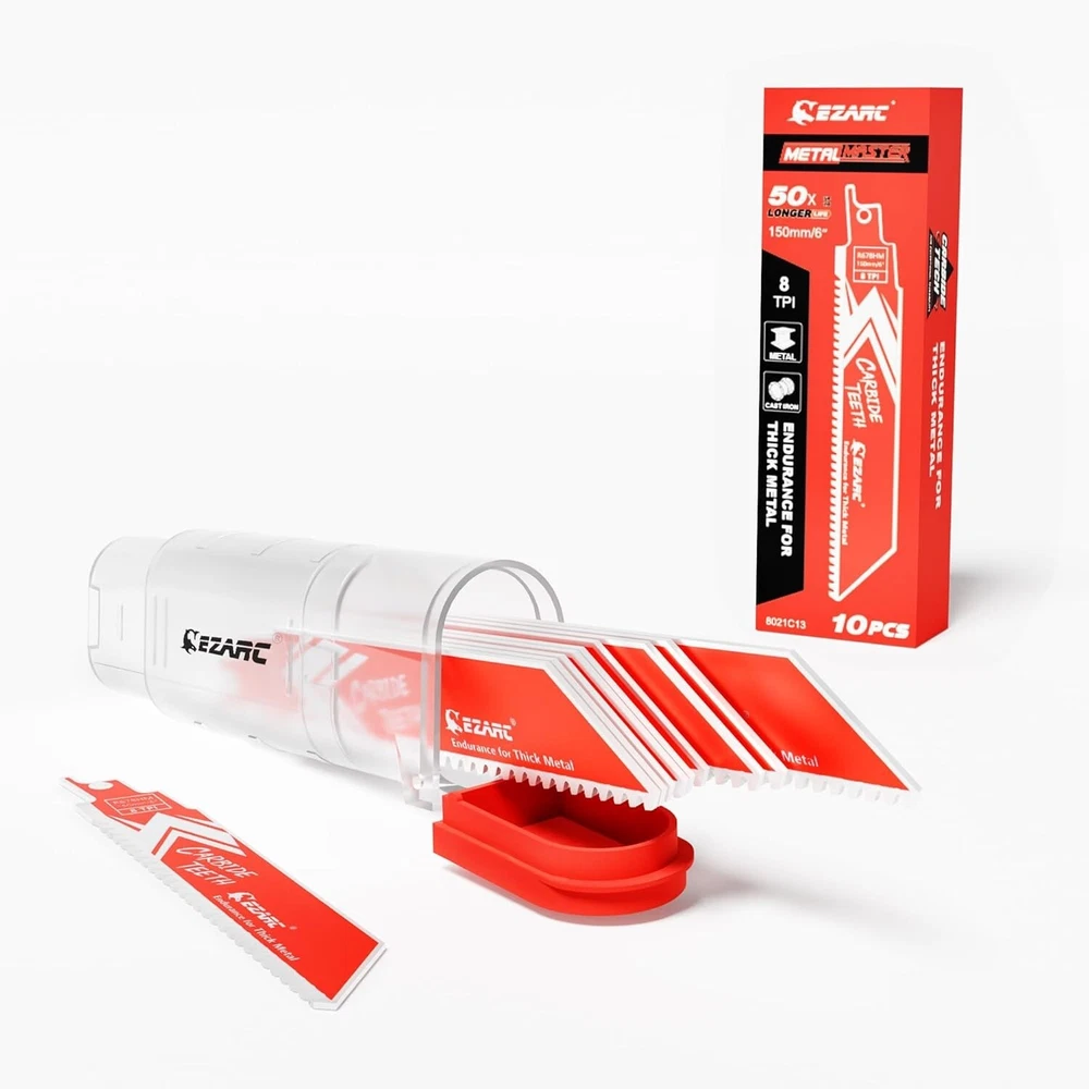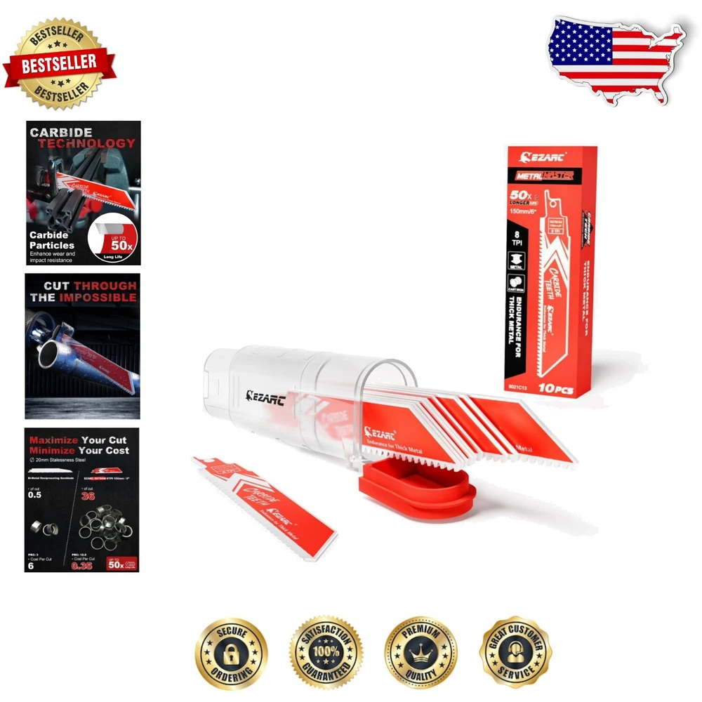 10-Pack Heavy-Duty Carbide Reciprocating Saw Blades - 6" 8TPI for Metal Cutting