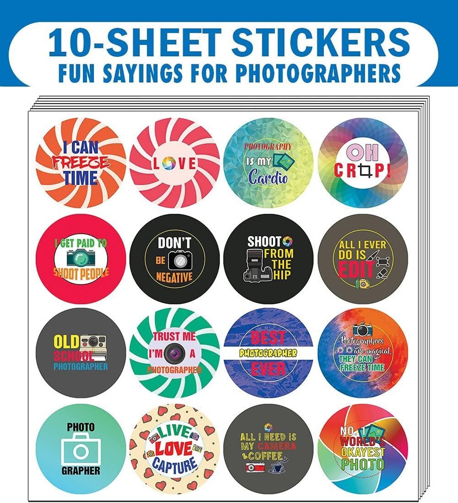 16 UNIQUE DESIGNS INSPIRING STICKERS FOR YOUR DIY PERSONALIZED DECORATIONS - I am a Photographer Stickers (10-Sheets x 16 Designs). These colorful and uniquely inspiring round shaped stickers are the best tool for DIY decoration and personalization of your belongings. GREAT STOCKING STUFFERS, TEACHING SUPPLEMENTARY MATERIALS, AND GIVEAWAY - Great stocking stuffers gifts for Photo Lovers, Artists, Designers, Men & Women. A perfect design to give during guidance sessions, classroom activities, school giveaways, birthdays, anniversaries, family day, and any other special occasions. MADE WITH DURABLE AND WATERPROOF MATERIALS - There is a lamination or coating to make the stickers high water resistant, and WILL NOT fade from the water. The stickers can stick it anywhere you like, and it sticks there and lasts a long time. A COLORFUL AND DECOR STICKER DECAL - Each sheet with 16 individual round stickers. There are 10 Sheets, with a total of 160 pieces of stickers. STICKER SIZE: 1.5 INCHES IN DIAMETER I am a Photographer Stickers (10 Sets X 16 Designs) COLORFUL AND COLLECTION OF TEXT STICKERS • Well designed. • Very encouraging. • Self-adhesive. I am a Photographer Stickers (10 Sets X 16 Designs) are super fun to collect; you can't have just one! That's why you will find a selection of stickers right here. Each package comes with different stickers in a variety of designs. Stick them here, stick them there, stick them everywhere! Everyone will love these self-adhesive stickers. These colorful stickers are perfect for any adults and these come with very inspiring messages and bright pictures. A fun, inexpensive way to add a decorative, notes, and stationery. Delight yourself with uplifting messages designs that are very encouraging. I am a Photographer Stickers (10 Sets X 16 Designs) perfect for giveaways, behavior incentives, prizes! These stickers are acid-free, nontoxic, and safe for use on photos. This product comes with a 60 days money back guarantee. You can return them to us for a full refund.
