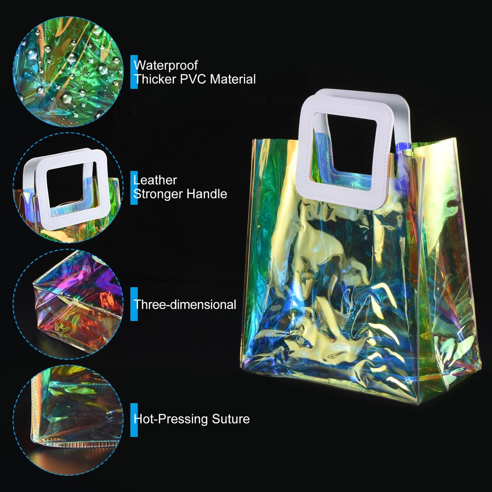 Document Waterproof & Durable: The iridescent gift bag is made of PVC, lightweight, waterproof, easy to clean, reusable, comfortable to touch, and not easy to break. Come with a square leather handle that is sturdy and durable enough, and can be used for a long time. (NOTE: The surface is smooth, but looks wrinkled due to reflection in photos)Large Capacity: The package contains 10 pieces of holographic gift bags, and the size of each piece is 28cm x 25cm x 15 cm/ 11" x 10" x 6". The capacity is sufficient, suitable for holding many items, and it is easy to carry. The quantity is sufficient to meet your various needs or share with others.Three-dimensional: The bottom of the holographic gift bags are square, and it is in a three-dimensional state when unfolded, which provides greater carrying capacity than ordinary plastic bags or shopping bags. Suitable for you to carry and store many small items, such as desserts, small gifts, make-up, biscuits, snacks, flower, books, etc.Iridescent Handbag Design: The iridescent design that reflects colorful light, the color of your gift and the color of the holographic gift bags will match to create a more dazzling light, allowing you to display delicate personal items or gifts. This exquisite bag isn't just for wrapping gifts. It is also part of your gift itself.Application: The holographic gift bags with handles can be used as a gift bag, stationery bag, candy bag, travel bag, cosmetic bag, art display bag and more. Widely suitable for parties, birthdays, weddings, celebrations, festivals, Christmas, Valentine's Day, etc. 10Pack Iridescent Gift Bags 11x10x6" Reusable Holographic Clear PVC Tote Bag Waterproof & Durable: The iridescent gift bag is made of PVC, lightweight, waterproof, easy to clean, reusable, comfortable to touch, and not easy to break. Come with a square leather handle that is sturdy and durable enough, and can be used for a long time. (NOTE: The surface is smooth, but looks wrinkled due to reflection in photos) Large Capacity: The package contains 10 pieces of holographic gift bags, and the size of each piece is 28cm x 25cm x 15 cm/ 11" x 10" x 6". The capacity is sufficient, suitable for holding many items, and it is easy to carry. The quantity is sufficient to meet your various needs or share with others. Three-dimensional: The bottom of the holographic gift bags are square, and it is in a three-dimensional state when unfolded, which provides greater carrying capacity than ordinary plastic bags or shopping bags. Suitable for you to carry and store many small items, such as desserts, small gifts, make-up, biscuits, snacks, flower, books, etc. Iridescent Handbag Design: The iridescent design that reflects colorful light, the color of your gift and the color of the holographic gift bags will match to create a more dazzling light, allowing you to display delicate personal items or gifts. This exquisite bag isn't just for wrapping gifts. It is also part of your gift itself. Application: The holographic gift bags with handles can be used as a gift bag, stationery bag, candy bag, travel bag, cosmetic bag, art display bag and more. Widely suitable for parties, birthdays, weddings, celebrations, festivals, Christmas, Valentine's Day, etc. Hot Item Payment 1.We accept eBay payment . 2.Payment must be received within 7 business days of auction closing. Shipping 1.We ship to your eBay or Paypal address. Please make sure your eBay and Paypal address is correct before you pay. 2.Items will be shipped within 1-3 business day when we received payment. 3.Delivery time depends on destination and other factors. Description Policy 10Pack Iridescent Gift Bags 11x10x6" Reusable Holographic Clear PVC Tote Bag Waterproof & Durable: The iridescent gift bag is made of PVC, lightweight, waterproof, easy to clean, reusable, comfortable to touch, and not easy to break. Come with a square leather handle that is sturdy and durable enough, and can be used for a long time. (NOTE: The surface is smooth, but looks wrinkled due to reflection in photos) Large Capacity: The package contains 10 pieces of holographic gift bags, and the size of each piece is 28cm x 25cm x 15 cm/ 11" x 10" x 6". The capacity is sufficient, suitable for holding many items, and it is easy to carry. The quantity is sufficient to meet your various needs or share with others. Three-dimensional: The bottom of the holographic gift bags are square, and it is in a three-dimensional state when unfolded, which provides greater carrying capacity than ordinary plastic bags or shopping bags. Suitable for you to carry and store many small items, such as desserts, small gifts, make-up, biscuits, snacks, flower, books, etc. Iridescent Handbag Design: The iridescent design that reflects colorful light, the color of your gift and the color of the holographic gift bags will match to create a more dazzling light, allowing you to display delicate personal items or gifts. This exquisite bag isn't just for wrapping gifts. It is also part of your gift itself. Application: The holographic gift bags with handles can be used as a gift bag, stationery bag, candy bag, travel bag, cosmetic bag, art display bag and more. Widely suitable for parties, birthdays, weddings, celebrations, festivals, Christmas, Valentine's Day, etc. Hot Item Payment 1.We accept eBay payment . 2.Payment must be received within 7 business days of auction closing. Shipping 1.We ship to your eBay or Paypal address. Please make sure your eBay and Paypal address is correct before you pay. 2.Items will be shipped within 1-3 business day when we received payment. 3.Delivery time depends on destination and other factors.