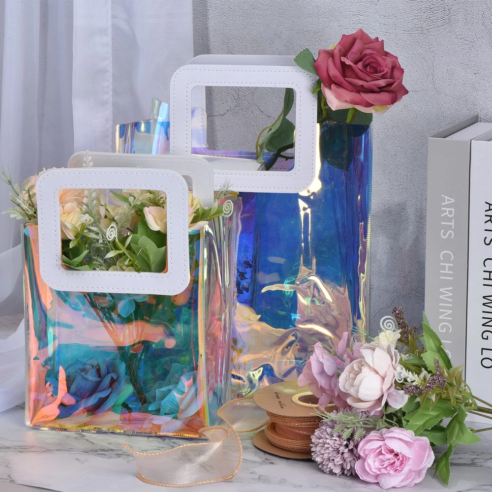 100 Pack Clear PVC Gift Bags 9x 6.7x2.8" Reusable Mini Gift Wrap Tote Bags