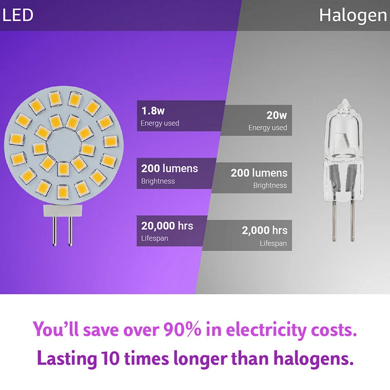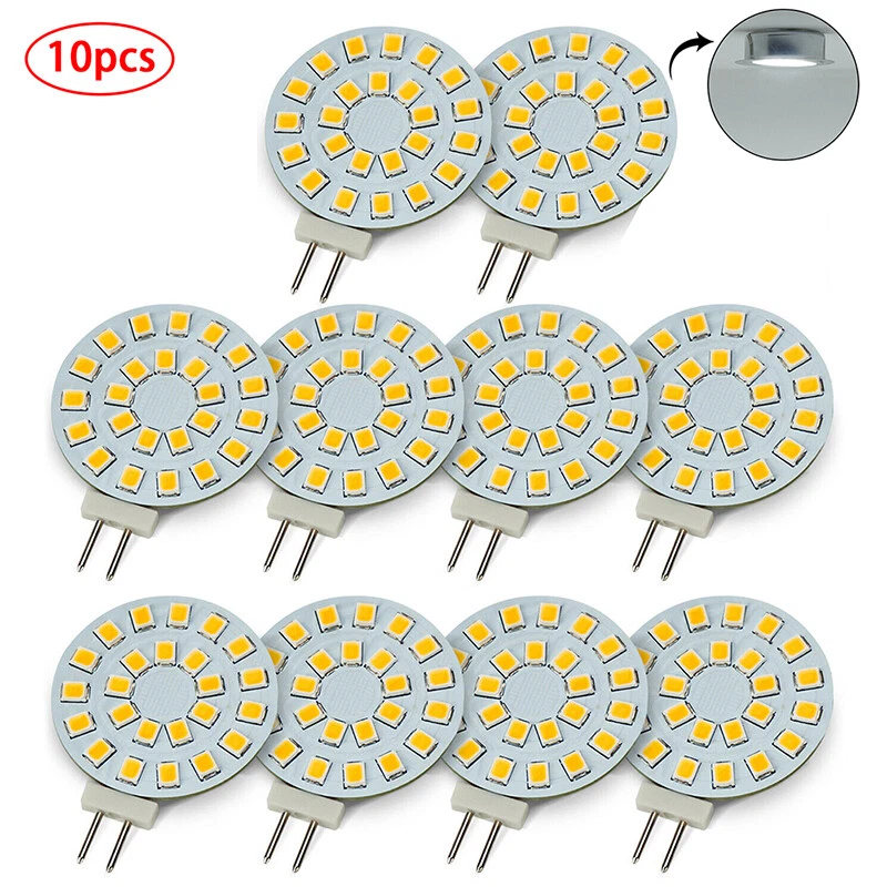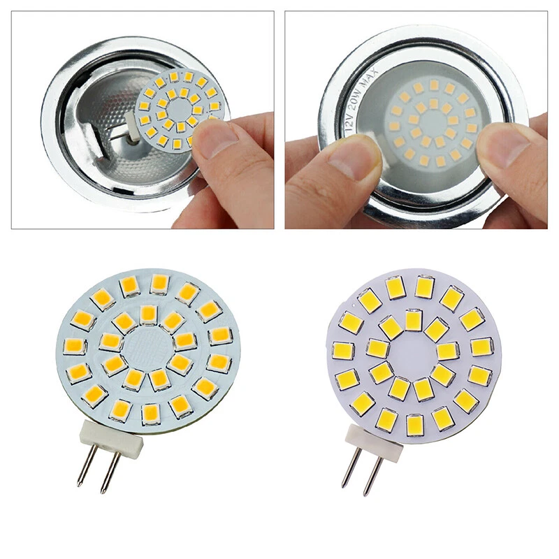 Description: G4 round LED lamps, 3 W replaces 20 W halogen light bulbs, 12 V AC/10-30 V DC, G4 bulbs for under-cabinet light recessed spotlight furniture recessed light ceiling light [Energy Class A++] G4 LED lamp delivers 200 lumens of light output, which corresponds to 20 watts of halogen with only 3w of energy consumption. Standard Ra80+, these bulbs create a comfortable and relaxing environment and differ from the original halogens xenon which emit a lot of heat. Features: The LEDs are exceptionally long-lasting, with an expected lifespan of 20,000 hours, 10 times the lifespan of halogens, significantly reducing the frequency of replacing burned-out bulbs. It is designed for use in 12V AC/DC household lighting, in-ceiling puck spotlight, under cabinet lighting, furniture cabinet, wardrobe downlight and in 10-30V DC circuit such as RV and RV (Note: The bulb can not be used with AC power over 16V). Each pack includes 6pcs,10pcs bulbs, brand new JAUHOFOGEI LED 1-year replacement warranty and 24-hour customer technical support. Specifications: Light Bulb Base: G4 Bulb Power: 1.8W Luminous Flux: 200 lm Voltage: 12V Light Color: Warm White, Cool White Color Temperature: 3000K, 6000K Led Chip: 2835 Bulb Shape: Circle Bulb Life: 20,000-24,999 hrs Eec Spectrum: A++ - G Package: 6 Pcs G4 LED Bulbs 10 Pcs G4 LED Bulbs On Dec 19, 2024 at 10:07:36 PST, seller added the following information: