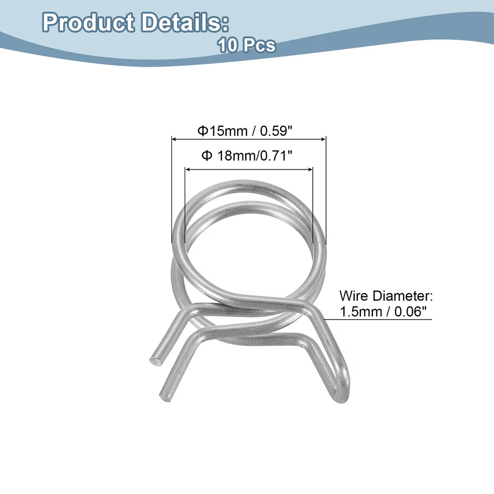 Document Description: Material: Made of stainless steel with a polished surface, these spring hose clamps are corrosion and rust-resistant for long-term use.Design: The spring hose clamps are designed with double-wound wire, which can spread the clamping force around the hose, and is more cost-effective than single-wire clamps.Easy to Use: These spring hose clamps are very easy to use, just use pliers to open the clamp and easily place it on the pipe.Wide Application: Spring hose clamps are widely used in automotive, agricultural, factory, and construction industries. Mainly used for fastening interfaces, they can firmly lock power equipment fuel lines, air hoses, water pipes, silicone hoses, vacuum hoses, automobile fuel lines, motorcycle air pipes, etc.Specification:Material: Stainless SteelFinish: PolishedInner Diameter: 15mm / 0.59inchMaximum Open Inner Diameter: 18mm/0.71inchWire Diameter: 1.5mm / 0.06inchPackage Content: 10pcs x Spring Hose Clamp Double Wire Spring Hose Clamp, 20pcs 304 Stainless Steel 6mm Spring Clips USD 7.78 Double Wire Spring Hose Clamp, 10pcs 304 Stainless Steel 5.5mm Spring Clips USD 6.71 Double Wire Spring Hose Clamp, 20pcs 304 Stainless Steel 5mm Spring Clips USD 7.49 Spring Hose Clamp, 10pcs 65Mn Steel 9mm Low Pressure Air Clip, Nickel Plated USD 7.03 Fuel Line Hose Clips, 20pcs 11mm 65Mn Steel Tubing Spring Clamps (Silver) USD 7.22 Fuel Line Hose Clips, 5pcs 55mm 65Mn Steel Tubing Spring Clamps USD 8.67 10Pcs 15mm/0.59inch Double Wire Spring Hose Clamp, Adjustable Spring Clips Description: Material: Made of stainless steel with a polished surface, these spring hose clamps are corrosion and rust-resistant for long-term use. Design: The spring hose clamps are designed with double-wound wire, which can spread the clamping force around the hose, and is more cost-effective than single-wire clamps. Easy to Use: These spring hose clamps are very easy to use, just use pliers to open the clamp and easily place it on the pipe. Wide Application: Spring hose clamps are widely used in automotive, agricultural, factory, and construction industries. Mainly used for fastening interfaces, they can firmly lock power equipment fuel lines, air hoses, water pipes, silicone hoses, vacuum hoses, automobile fuel lines, motorcycle air pipes, etc. Specification: Material: Stainless Steel Finish: Polished Inner Diameter: 15mm / 0.59inch Maximum Open Inner Diameter: 18mm/0.71inch Wire Diameter: 1.5mm / 0.06inch Package Content: 10pcs x Spring Hose Clamp Hot Item Fuel Line Hose Clips, 100pcs 11mm 65Mn Steel Tubing Spring Clamps USD 12.35 Fuel Line Hose Clips, 100pcs 3mm 304 Stainless Steel Tube Spring Clamps(Silver) USD 12.2 Fuel Line Hose Clips, 20pcs 4mm 65Mn Steel Tubing Spring Clamps USD 7.42 Fuel Line Hose Clips, 20pcs 25mm 304 Stainless Steel Tube Spring Clamps(Silver) USD 9.27 Double Wire Spring Hose Clamp, 50pcs 304 Stainless Steel 10mm Spring Clips USD 11.2 Payment We accept eBay payment. Please do not email us to ask for other payment option. We appreciate prompt payment and look forward to your business in the future. Unpaid item will be filed without receiving payment in 7 days from listing ended. Shipping Usually we ship your order out within 24 hours in business day. For shipping and handling charges (S&H) for specific item, please refer to the item listing page for more details. Please make sure your shipping address is correct. We are not responsible for any loss in transit if a wrong address is provided. Return Policy Returns for exchange are permitted and must be initiated by the buyer within 30 days upon receipt. If you would like to return your product(s) for repair / replacement / refund, please kindly contact our customer service representatives via email for an authorized RMA number. Your returned product(s) will not be processed without a completed RMA. About Us We are continually expanding our product selection to better serve your need. We look forward to providing the best sevice to you - our dear customers, so take a look around our store and find the product that you want. You can put your trust in us! If you need any help or have any suggestions, please don't hesititate to contact us anytime , we will reply you within 24 hours and try the best to help you. Description Policy 10Pcs 15mm/0.59inch Double Wire Spring Hose Clamp, Adjustable Spring Clips Description: Material: Made of stainless steel with a polished surface, these spring hose clamps are corrosion and rust-resistant for long-term use. Design: The spring hose clamps are designed with double-wound wire, which can spread the clamping force around the hose, and is more cost-effective than single-wire clamps. Easy to Use: These spring hose clamps are very easy to use, just use pliers to open the clamp and easily place it on the pipe. Wide Application: Spring hose clamps are widely used in automotive, agricultural, factory, and construction industries. Mainly used for fastening interfaces, they can firmly lock power equipment fuel lines, air hoses, water pipes, silicone hoses, vacuum hoses, automobile fuel lines, motorcycle air pipes, etc. Specification: Material: Stainless Steel Finish: Polished Inner Diameter: 15mm / 0.59inch Maximum Open Inner Diameter: 18mm/0.71inch Wire Diameter: 1.5mm / 0.06inch Package Content: 10pcs x Spring Hose Clamp Double Wire Spring Hose Clamp, 20pcs 304 Stainless Steel 6mm Spring Clips USD 7.78 Double Wire Spring Hose Clamp, 10pcs 304 Stainless Steel 5.5mm Spring Clips USD 6.71 Double Wire Spring Hose Clamp, 20pcs 304 Stainless Steel 5mm Spring Clips USD 7.49 Spring Hose Clamp, 10pcs 65Mn Steel 9mm Low Pressure Air Clip, Nickel Plated USD 7.03 Fuel Line Hose Clips, 20pcs 11mm 65Mn Steel Tubing Spring Clamps (Silver) USD 7.22 Fuel Line Hose Clips, 5pcs 55mm 65Mn Steel Tubing Spring Clamps USD 8.67 Hot Item Fuel Line Hose Clips, 100pcs 11mm 65Mn Steel Tubing Spring Clamps USD 12.35 Fuel Line Hose Clips, 100pcs 3mm 304 Stainless Steel Tube Spring Clamps(Silver) USD 12.2 Fu