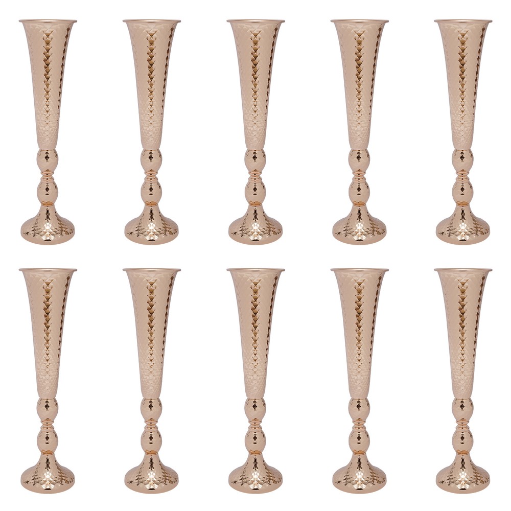 10Pcs 17.3/20.5 Tall Metal Trumpet Vase Silk Floral Wedding Centerpieces Decor Description With a Classic Flared and Tall Design and a Shiny Finish, This Metal Trumpet Vase Is Perfect As a Decoration for Any Event. the Golden Body Will Make Your Events and Home More Gorgeous and Elegant. It's Perfect for Weddings, Birthday Parties, Anniversaries, Valentine's Day, and More, Making Your Space More Eye-catching and Pleasing to the Eye. Key Features Exquisite Decoration: You Can Put the Artificial Flower Ball in the Vase As a Beautiful Vase Decoration for some Special Days, Especially Weddings, or As a Normal Home Decoration. Durable Vase: the Metal Trumpet Vase Is Made of High-strength Iron, Which Has Strong Impact Resistance and Is Not Easy to Deform. Attractive Appearance: the Vase Adopts a High Foot Design and Classic Flared Design with an S Shape, and the Metal Surface Is Mechanically Pressed with Diamond-shaped Patterns , Which Has a Unique Fashion Beauty. Great Gift: Its Delicate Shape Makes It a Perfect Housewarming or Wedding Gift. It Is a Great Decoration for Birthdays, Candlelight Dinners, Dining Room, Living Room, Living Room, Study, and bar. Simple Assembly: the Product Is Mainly Composed of Four Parts, Equipped with Complete Installation Accessories, and the Assembly Is Very Simple. Protective Packaging: the Accessories Inside the Product Package Are Packed with Pearl Cotton Bags, Which Can Effectively Protect the Metal Surface from Being Cut. so You Don't Need to Worry About the Product Being Damaged Due to a Collision During Transportation. Versatile Style: Classic and Luxurious, the Golden Vase Is Perfect for Any Setting and Adds a Touch of Brilliance to Your Space. Fine Workmanship: the Metal Surface Adopts the Electroplating Gold Process, Which Increases the Hardness of the Metal and the Corrosion Resistance. and the Advanced Plating Technology Can Make the Surface More Smooth and Shiny. Details Multiple Sanded Edges: the Metal Edges of the Vase Are Polished and Sanded Without Burrs, so You Won't Easily Scratch Your Hands When You Use Them. Flared Bottle Body: the Flared Bottle Body with a Wide Top and a Narrow Bottom Is Not Only Unique in Appearance but Also More Suitable for Placing Decorations Such As Flower Balls. Application It Is Suitable to Be Placed on the Tabletop in the Living Room, Bedroom, Kitchen, Office, Etc. It Is Suitable for Use with Seasonal or Artificial Flowers, Brushes, Buds, Garlands, and Bouquets, As Decorations for Weddings, Birthday Parties, Anniversaries, and Valentine's Day. It Can Be a Gift for Family and Friends. Specification Material: Iron Color: Gold Mount Type: Desktop Mount Surface Treatment Process: Electroplating with Gold Gross Weight: 6.2kg/13.67lbs Net Weight: 5.8kg/12.79lbs Package Size: 35*35*22cm/13.78*13.78*8.66inch Each Product Size: 13.5*52cm/5.3*20.5inch Bottle Mouth Diameter: 13cm/5.1inch Package Included 10 X Metal Trumpet Vase s All Accessories for Installation Notes This Vase Does Not Include Decorations Such As Flower Balls, You Need to Buy Them Separately. Please Note That This Product Cannot Directly Hold Water. Please Allow the Slight Color Difference Caused by the Shooting Light and 1-3 Cm Error Due to Manual Measurement, and Make Sure You Do Not Mind Before Ordering. Payment Delivery details Terms of sales About us Contact us Payment We accept ebay payment 。 Fees such as import duties, taxes are not included in the item price or shipping costs. These charges are the buyer's responsibility. Delivery details Shipping: 2-9 working days to: USA Terms of sales We maintain high standards of excellence and strive for hundred percent customer satisfaction. Feedback is very important to us. We hope that you contact us immediately before you give neutral or negative feedback, so that we can address your concerns. It is impossible to address issues if we do not know about them! About us Your satis faction is our ultimate goal. We work hard to earn your trust and future business. Our certified technicians have tested each item before shipping. The unit comes with 1 year limited warranty on all manufacturing defects. a) If you receive a defective item, you may return it or ask for a discount. Please contact us within 14 days after you receive the package. b) What you returned must be intact and in its original packaging as re? u. Customer is responsible for shipping costs of the returned item. c) We will cover the cost of shipping back t with the shipping rate indicated in the registration page. We will send you a new unit or refund the full payment you paid. Thank you. Contact us Business Hour Business Hour: Monday To Friday: 8:30 AM to 5:00 PM (Beijing China time) Due to time zones, our reply to your questions may not be immediately. But within above working time, we will reply your email within 24 hours. If it's non-workdays, please kindly be patient and wait till Monday. Please contact us with ebay message. Please feel free to contact us if you have any questions. Monday To Friday: 8:30 AM to 5:00 PM (Beijing China time) Due to time zones, our reply to your questions may not be immediately. But within above working time, we will reply your email within 24 hours. If it's non-workdays, please kindly be patient and wait till Monday. Please contact us with ebay message. Please feel free to contact us if you have any questions.