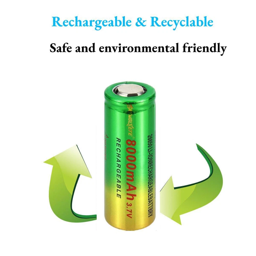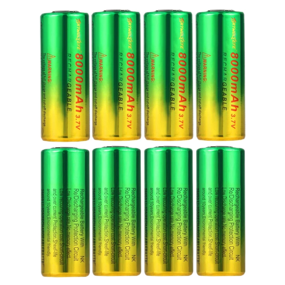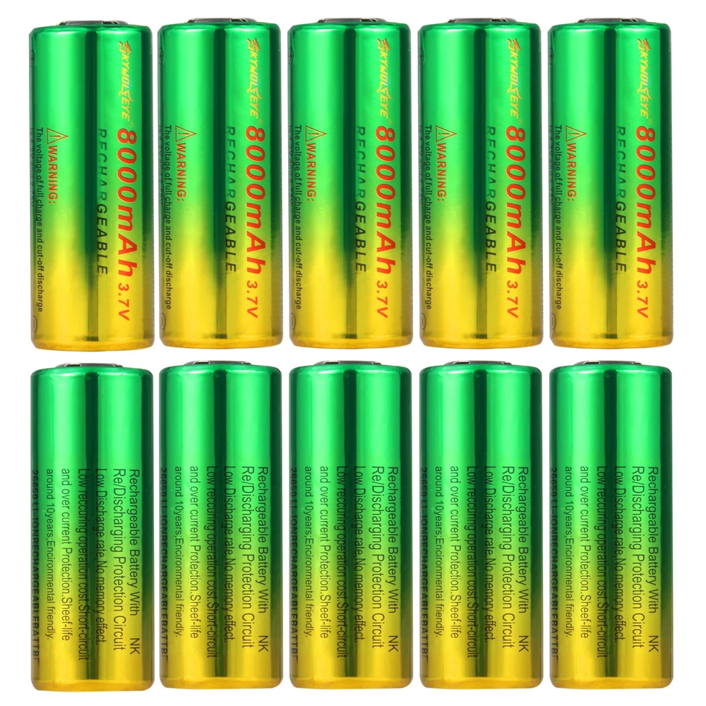 10Pcs 26650 3.7V 8000mAh Lithium Rechargeable Batteries for LED Flashlight