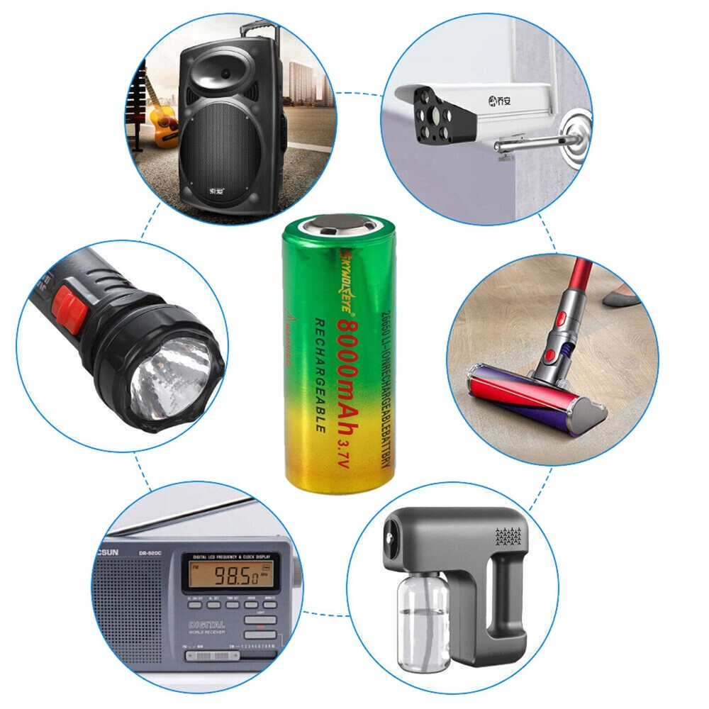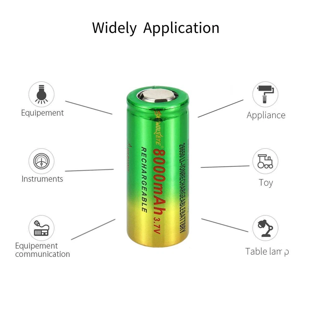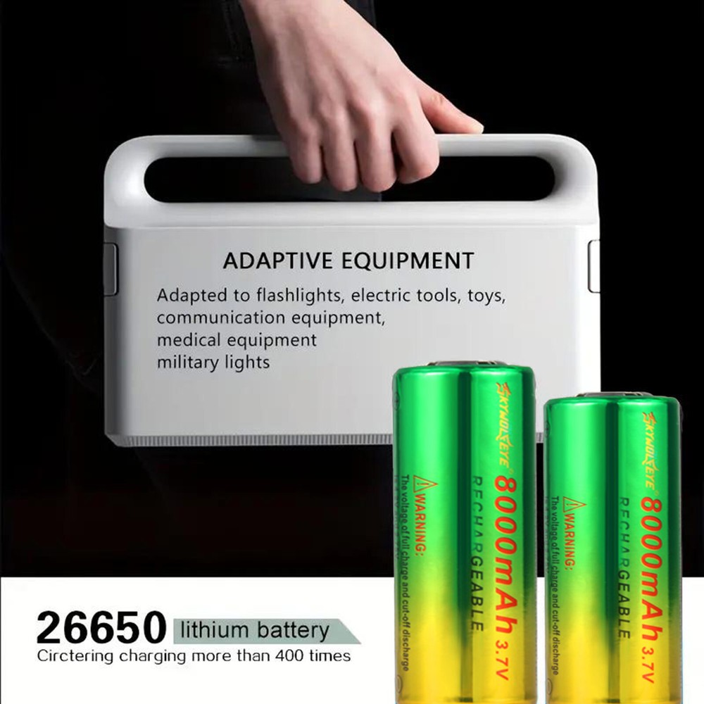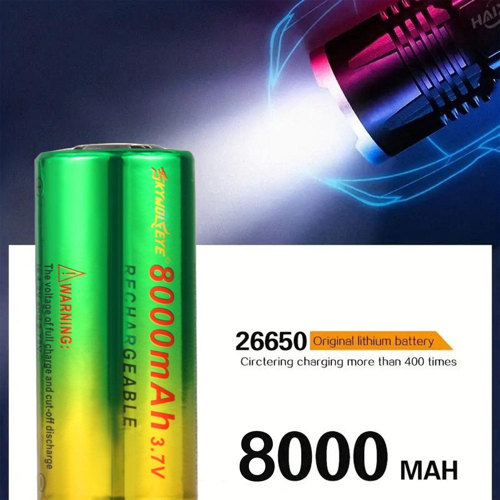 10Pcs 26650 3.7V 8000mAh Lithium Rechargeable Batteries for LED Flashlight