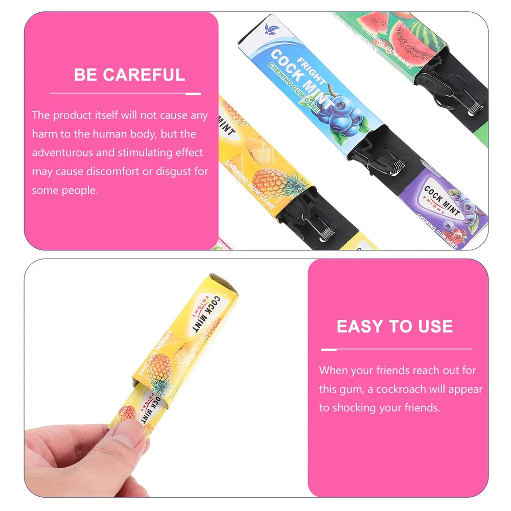 Description Make fun of your friends and deceive them with this funny chewing gum. When the fake gum is pulled apart, it will show up a fake , scaring the person who pulled it. The product itself will not cause any harm to the human body, but the effect of adventurous stimulation may cause discomfort or disgust for some people. Features - Color: Random Color. - Material: Paper, plastic. - Size: 8.50X2.20X1.50cm/ 3.34X0.86X0.59in. - It looks like a pack of real chewing gum, so your friends will not be wary of it and increase the chance of success of the prank. - When your friends reach out for this gum, a will appear to shocking your friends. - When you try to open this gum, you will get an unexpected "little surprise". - Just for fun. Not recommended for children or patients with heart disease. - Note: The product itself will not cause any harm to the human body, but the adventurous and stimulating effect may cause discomfort or disgust for some people. 10 x prank toys