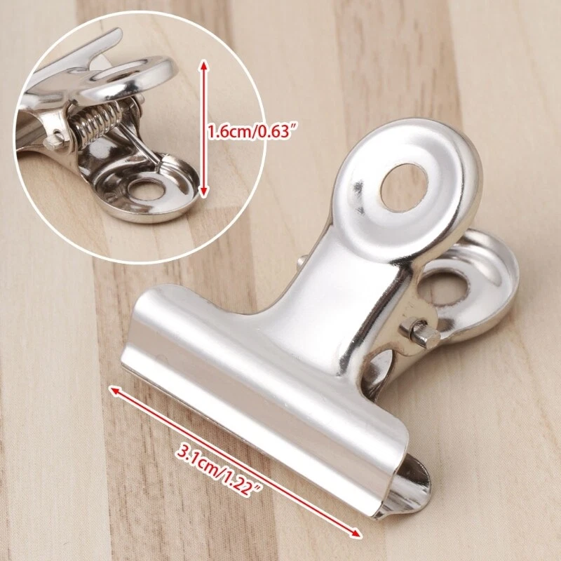 10Pcs Metal Grip Clip Sealer Bag Clamp Paper Document Ticket Binder Features: and high High stainless steel, durable. Good grip and can hold anything, and a hole support to be hanging up. Widely used for office files organization and home kitchen storage. for Ideal for holding papers, documents, receipts or other office papers. Also can be use to sealing milk powder, oatmeal, potato chips Specifications: Stainless Steel Size(approx): 3.1cm/ 1.22" Color: Silver Quantity: 10 Pcs Note: 1.Transition: 1cm=10mm=0.39inch 2.Please allow 0-1cm error due to manual measurement. pls make sure you do not mind before you bid. 3.Due to the difference between different monitors, the picture may not reflect the actual color of the item. Thank you! Package includes:(No retail package) 10 Pcs Clips