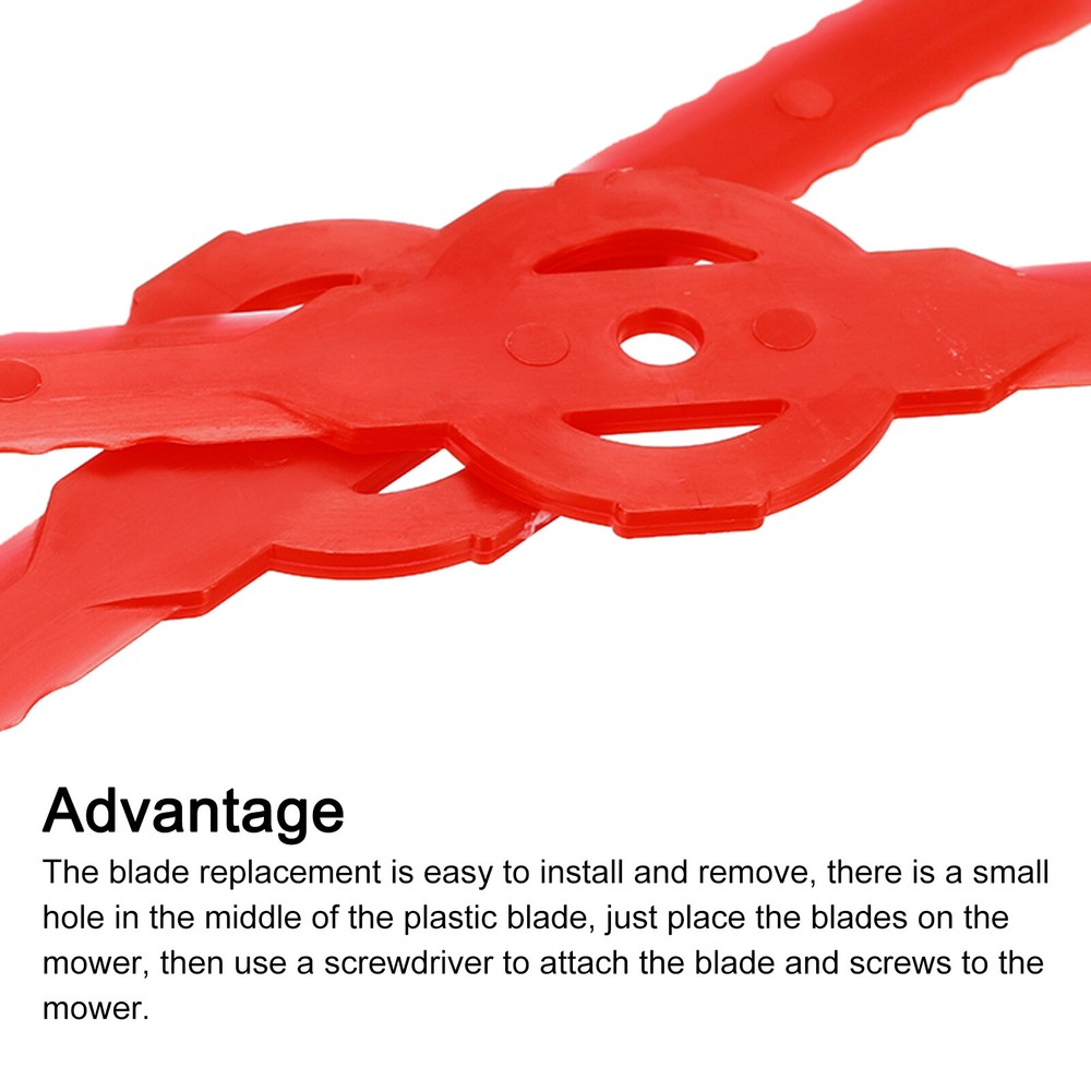 Document Description:The cutter blades replacement are made of plastic material, lightweight and durable, has good waterproof and wear resistance, can be applied for a long time without deformation.The edge of the garden mower trimmer blade is designed with gears, which can mow grass faster and easier, improve work efficiency, save time and effort. It will automatically rebound when it hits a hard object, which is safer and more efficient.The blades replacement is easy to install and remove, there is a small hole in the middle of the plastic blade, just place the blades on the mower, then use a screwdriver to attach the blade and screws to the mower. Please confirm the size before purchasing it.The lawn garden mower blade fits most lawn mowers, widely be used in garden, field, branches, weeds, outdoor grass, potted plants, fruit trees, and so on.Specification:Material: PlasticMounting Hole Dia.: 5mm/0.20"Total Size: 140mmx33mm/5.51"x1.30"(L*W)Package Content:10pcs x String Trimmer Head Blades Replace String Trimmer Head Blades Replace, 10Pcs Plastic Lawn Mower Weed Blades Red Description: The cutter blades replacement are made of plastic material, lightweight and durable, has good waterproof and wear resistance, can be applied for a long time without deformation. The edge of the garden mower trimmer blade is designed with gears, which can mow grass faster and easier, improve work efficiency, save time and effort. It will automatically rebound when it hits a hard object, which is safer and more efficient. The blades replacement is easy to install and remove, there is a small hole in the middle of the plastic blade, just place the blades on the mower, then use a screwdriver to attach the blade and screws to the mower. Please confirm the size before purchasing it. The lawn garden mower blade fits most lawn mowers, widely be used in garden, field, branches, weeds, outdoor grass, potted plants, fruit trees, and so on. Specification: Material: Plastic Mounting Hole Dia.: 5mm/0.20" Total Size: 140mmx33mm/5.51"x1.30"(L*W) Package Content: 10pcs x String Trimmer Head Blades Replace Hot Item Payment 1.We accept eBay payment . 2.Payment must be received within 7 business days of auction closing. Shipping 1.We ship to your eBay or Paypal address. Please make sure your eBay and Paypal address is correct before you pay. 2.Items will be shipped within 1-3 business day when we received payment. 3.Delivery time depends on destination and other factors. Description Policy String Trimmer Head Blades Replace, 10Pcs Plastic Lawn Mower Weed Blades Red Description: The cutter blades replacement are made of plastic material, lightweight and durable, has good waterproof and wear resistance, can be applied for a long time without deformation. The edge of the garden mower trimmer blade is designed with gears, which can mow grass faster and easier, improve work efficiency, save time and effort. It will automatically rebound when it hits a hard object, which is safer and more efficient. The blades replacement is easy to install and remove, there is a small hole in the middle of the plastic blade, just place the blades on the mower, then use a screwdriver to attach the blade and screws to the mower. Please confirm the size before purchasing it. The lawn garden mower blade fits most lawn mowers, widely be used in garden, field, branches, weeds, outdoor grass, potted plants, fruit trees, and so on. Specification: Material: Plastic Mounting Hole Dia.: 5mm/0.20" Total Size: 140mmx33mm/5.51"x1.30"(L*W) Package Content: 10pcs x String Trimmer Head Blades Replace Hot Item Payment 1.We accept eBay payment . 2.Payment must be received within 7 business days of auction closing. Shipping 1.We ship to your eBay or Paypal address. Please make sure your eBay and Paypal address is correct before you pay. 2.Items will be shipped within 1-3 business day when we received payment. 3.Delivery time depends on destination and other factors.