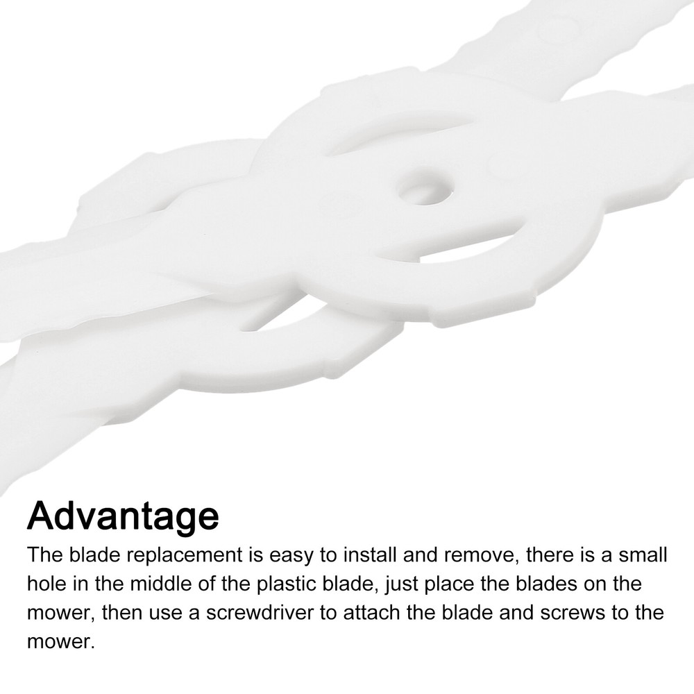 Document Description:The cutter blades replacement are made of plastic material, lightweight and durable, has good waterproof and wear resistance, can be applied for a long time without deformation.The edge of the garden mower trimmer blade is designed with gears, which can mow grass faster and easier, improve work efficiency, save time and effort. It will automatically rebound when it hits a hard object, which is safer and more efficient.The blades replacement is easy to install and remove, there is a small hole in the middle of the plastic blade, just place the blades on the mower, then use a screwdriver to attach the blade and screws to the mower. Please confirm the size before purchasing it.The lawn garden mower blade fits most lawn mowers, widely be used in garden, field, branches, weeds, outdoor grass, potted plants, fruit trees, and so on.Specification:Material: PlasticMounting Hole Dia.: 5mm/0.20"Total Size: 140mmx33mm/5.51"x1.30"(L*W)Package Content:10pcs x String Trimmer Head Blades Replace String Trimmer Head Blades Replace, 10Pcs Plastic Lawn Mower Weed Blades White Description: The cutter blades replacement are made of plastic material, lightweight and durable, has good waterproof and wear resistance, can be applied for a long time without deformation. The edge of the garden mower trimmer blade is designed with gears, which can mow grass faster and easier, improve work efficiency, save time and effort. It will automatically rebound when it hits a hard object, which is safer and more efficient. The blades replacement is easy to install and remove, there is a small hole in the middle of the plastic blade, just place the blades on the mower, then use a screwdriver to attach the blade and screws to the mower. Please confirm the size before purchasing it. The lawn garden mower blade fits most lawn mowers, widely be used in garden, field, branches, weeds, outdoor grass, potted plants, fruit trees, and so on. Specification: Material: Plastic Mounting Hole Dia.: 5mm/0.20" Total Size: 140mmx33mm/5.51"x1.30"(L*W) Package Content: 10pcs x String Trimmer Head Blades Replace Hot Item Payment 1.We accept eBay payment . 2.Payment must be received within 7 business days of auction closing. Shipping 1.We ship to your eBay or Paypal address. Please make sure your eBay and Paypal address is correct before you pay. 2.Items will be shipped within 1-3 business day when we received payment. 3.Delivery time depends on destination and other factors. Description Policy String Trimmer Head Blades Replace, 10Pcs Plastic Lawn Mower Weed Blades White Description: The cutter blades replacement are made of plastic material, lightweight and durable, has good waterproof and wear resistance, can be applied for a long time without deformation. The edge of the garden mower trimmer blade is designed with gears, which can mow grass faster and easier, improve work efficiency, save time and effort. It will automatically rebound when it hits a hard object, which is safer and more efficient. The blades replacement is easy to install and remove, there is a small hole in the middle of the plastic blade, just place the blades on the mower, then use a screwdriver to attach the blade and screws to the mower. Please confirm the size before purchasing it. The lawn garden mower blade fits most lawn mowers, widely be used in garden, field, branches, weeds, outdoor grass, potted plants, fruit trees, and so on. Specification: Material: Plastic Mounting Hole Dia.: 5mm/0.20" Total Size: 140mmx33mm/5.51"x1.30"(L*W) Package Content: 10pcs x String Trimmer Head Blades Replace Hot Item Payment 1.We accept eBay payment . 2.Payment must be received within 7 business days of auction closing. Shipping 1.We ship to your eBay or Paypal address. Please make sure your eBay and Paypal address is correct before you pay. 2.Items will be shipped within 1-3 business day when we received payment. 3.Delivery time depends on destination and other factors.