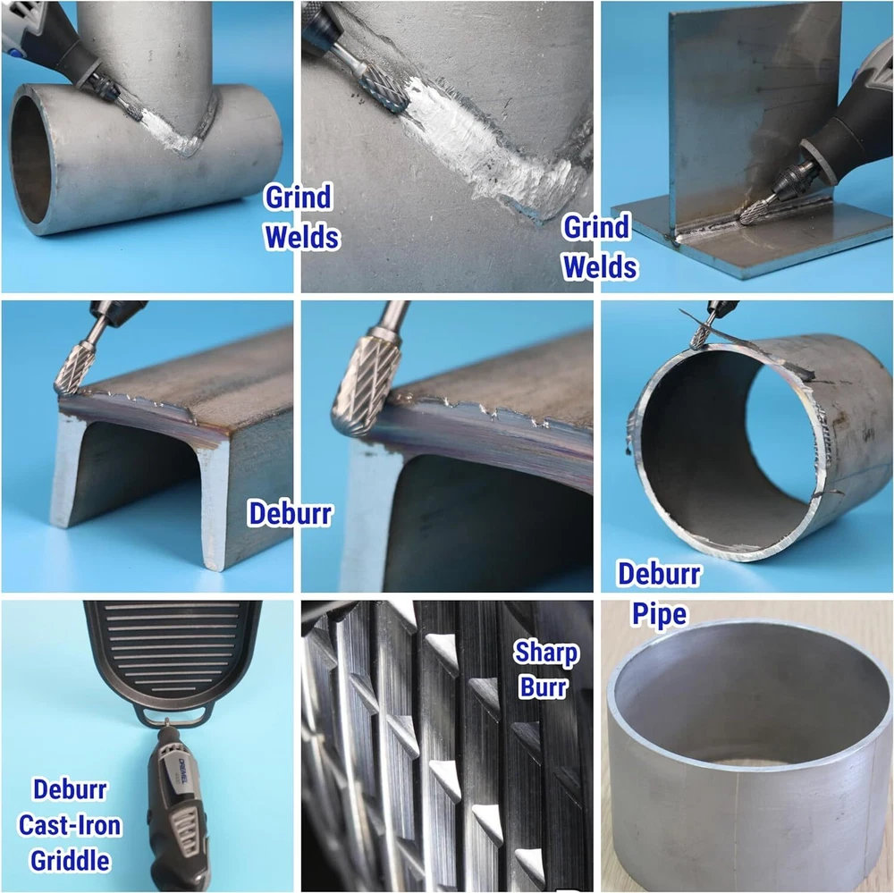 Free eBay listing template designed by dewiso.com 10 Pcs Carbide Burr Set 1/8" Shank Compatible with Dremel Milwaukee Bits Rotary Tools Attachment Kit Rasp Drill File Accessories Metal Wood Stone Steel Grinding Carving Cutting Polishing FREE AND FAST SHIPPING! About this item The 10pcs double cut tungsten carbide burr bits set compatible with Dremel metal grinding bits, compatible with Hardell Milwaukee DeWALT angle or straight air or electric die grinder or drill. More aggressive than diamond grinding bits stone grinding bits sanding drum sanding bits. Used for 3-jaw chuck drill (not optimal) and high speed rotary tool (optimal). A must-have versatile shape carbide burr bits kit cutting bits grinding bits carving bit engraving bits deburring bits drill bits for hard metal steel aluminum stone wood plastic. 3mm cylindrical shank compatible with Dremel 1/8"(3.175mm) shank bits compatible with Dremel rotary tool rasp file accessories wood carving bits compatible with Dremel flex shaft. Perfect for tight spaces than grinding wheel and grinding discs, great for detail work. For lots of materials removal please use our larger shank burrs bits and 500W+ rotary tool. 6 years returnless replacement. Product We offer a 30-Day Return Policy on items which you are not completely satisfied with. You have the option for a full-refund or an exchange of the item. No returns are available on items shipped outside of the US . Shipping We offer Free Shipping to the US and ship within 2 business days of payment, usually sooner. We use UPS express shipping. That's why your products are usually delivered within 3 days . Contact We try our very best to make sure every customer is completely satisfied. If there's a problem , message us! We're happy to help. 24/7 live chat available.