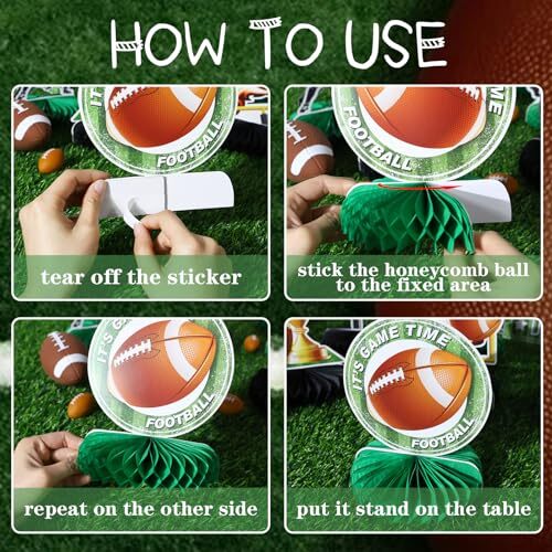 Return Policy Fast Delivery Trusted seller Football Party Decorations 10 Pieces Football Party Honeycomb Table Centerpiece Football Table Decorations for Superbowl Football Game Day Tailgate Party Favors Supplies Product Description Football Party Decorations: You will receive 8 pieces of football honeycomb table decorations and 2 pieces of standing cardstock decorations that will perfectly accent your football tailgate themed event High Quality: All pieces are double sided, made of thick high quality cardstock and paper, well made, fine texture, not easy to fade, keep the party going all season long with our football honeycomb Easy To DIY: These football table centerpieces are so easy to make, just glue the honeycomb to the card. The dimensional cardboard decorations are already pre-folded and easy to assemble. Save time and effort while still creating a festive atmosp Variety of Scenarios: Our football themed table centerpiece will let you and your friends experience a fun and exciting party, suitable for decorating for Superbowl, football themed parties, birthday parties, tailgating parties, sports events and more Guaranteed Customer Satisfaction: We are committed to providing you with the best products and customer service. If you have any questions or concerns, please feel free to contact us. Get ready to win big with our football party decorations Shipping Returns Payment Shipping Shipping is FREE to all addresses other than APO/PO boxes in the lower 48 states. All our stock ships from US-based warehouses. Shipped via USPS or UPS (depending on location and package weight) Unless stated otherwise, all orders will ship within 24-72 hours of your payment being processed. Check our feedback to see the great reviews of FAST shipping we offer. Returns Seller does not accept returns Payment We currently accept payment via eBay managed payments only. Once payment is cleared, we will dispatch your shipment within 1-3 business days. Please refer to the "Shipping" tab for more information regarding shipping speed to your destination.