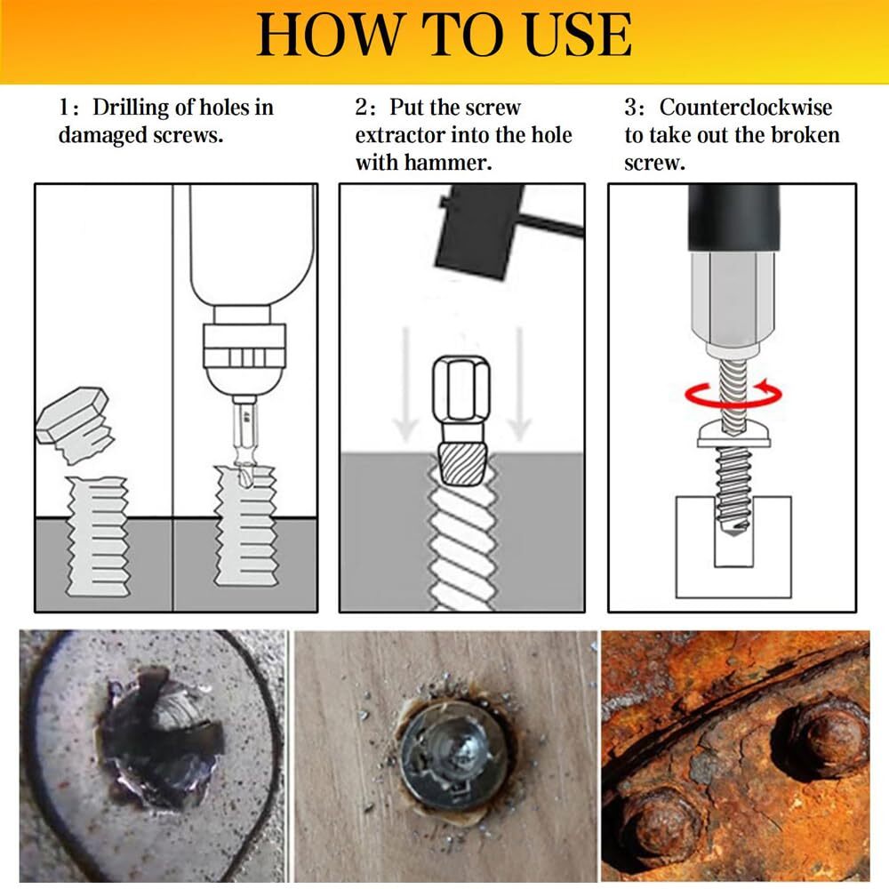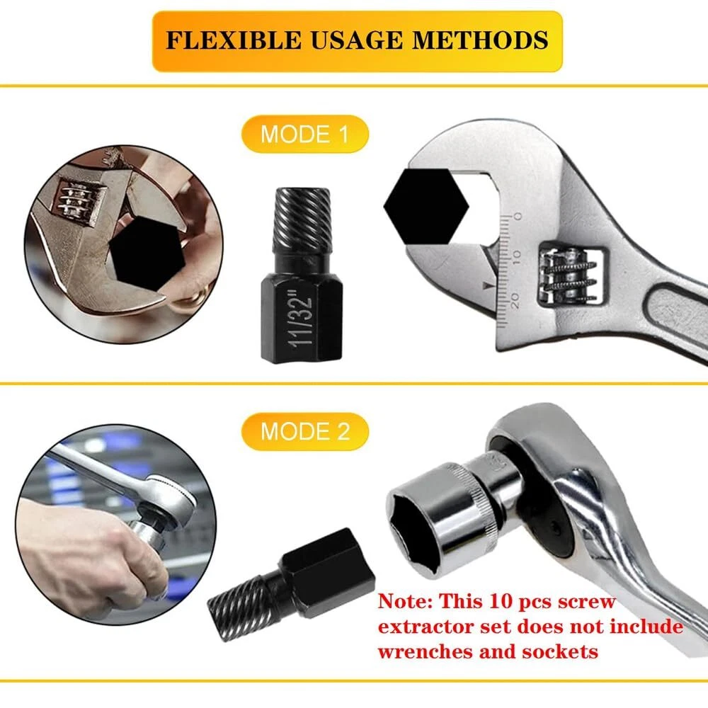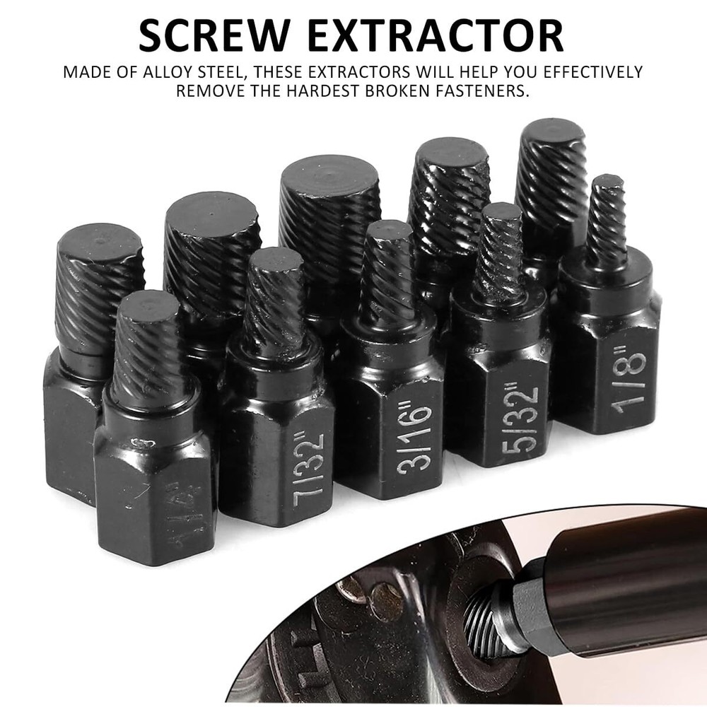 This screw extractor set is a lifesaver for removing stubborn broken bolts and stripped screws! The high-quality alloy steel construction ensures durability and rust resistance, while the hex head design provides a solid grip. The multi-spline extractors work like magic on tough fasteners, making repairs quick and easy. Perfect for DIYers and professionals alike—highly recommended!