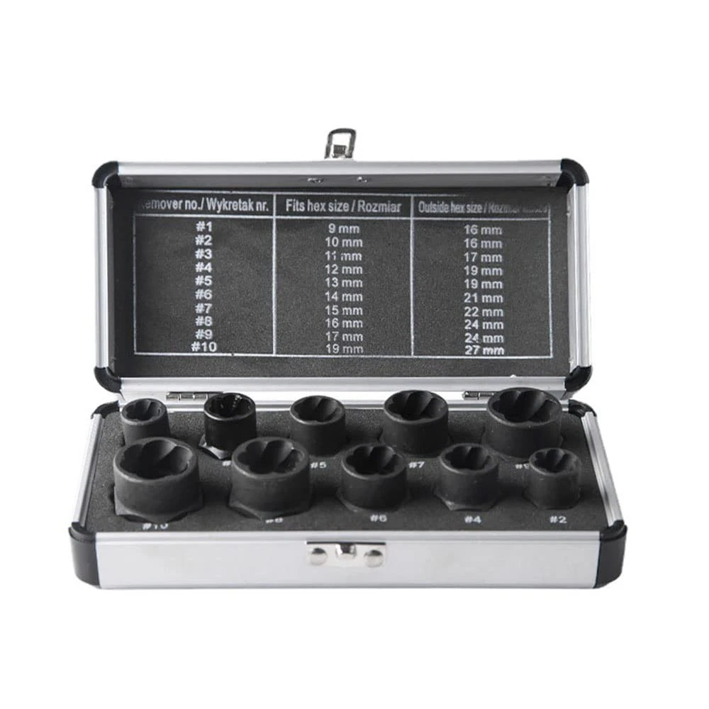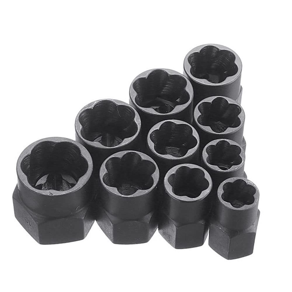 This bolt and nut remover set is a lifesaver for stubborn, stripped, or rusted fasteners! The high-quality chrome vanadium steel makes them tough and long-lasting, while the compatibility with spanners and sockets speeds up the job. With 10 pieces in the set, it covers a wide range of sizes, making it perfect for DIYers and pros alike. Whether it's a rounded-off bolt or a painted nut, these extractors grip tight and get the job done without slipping. A must-have for any toolbox!