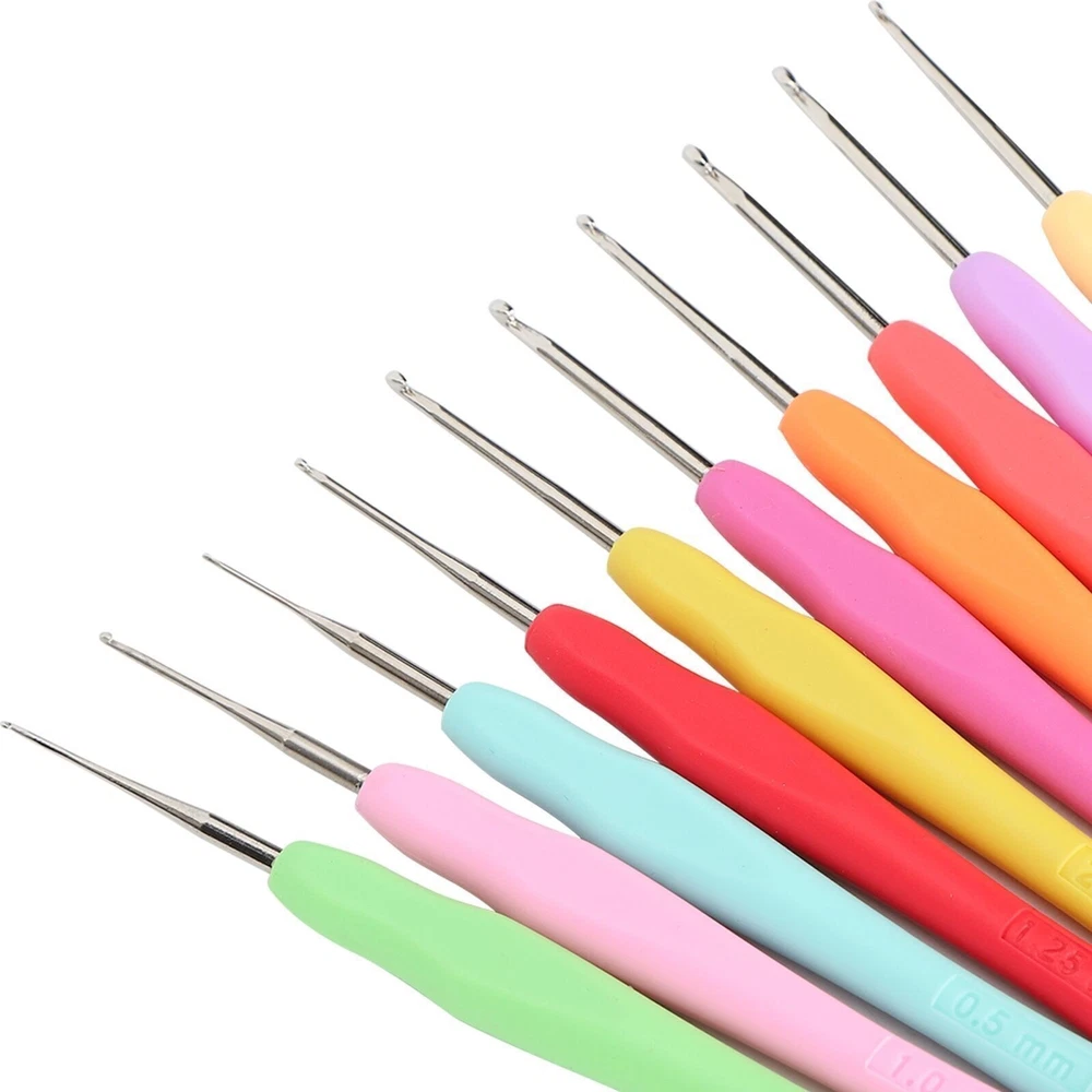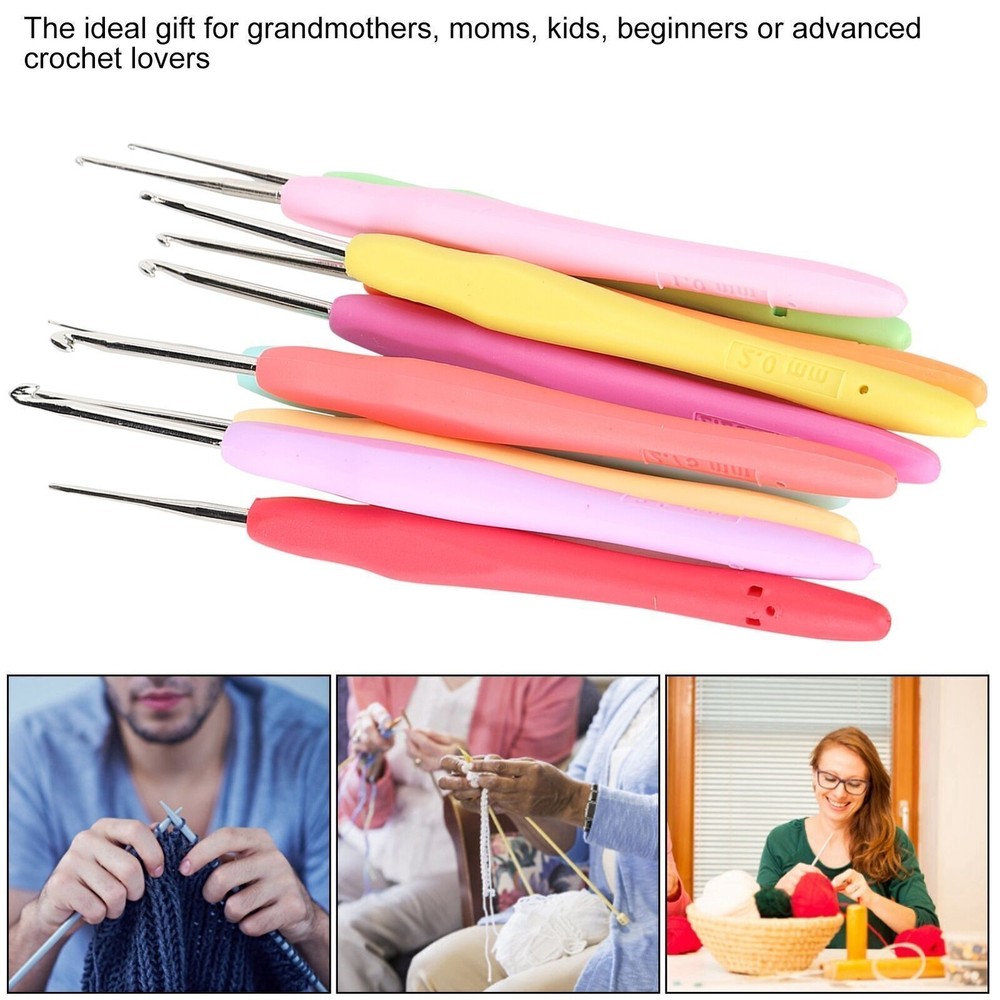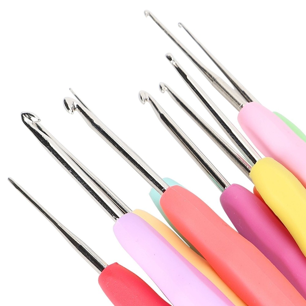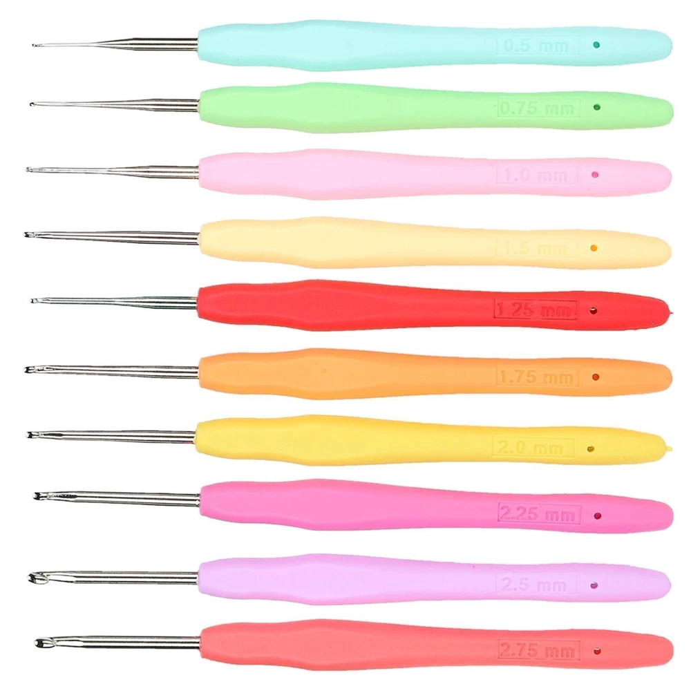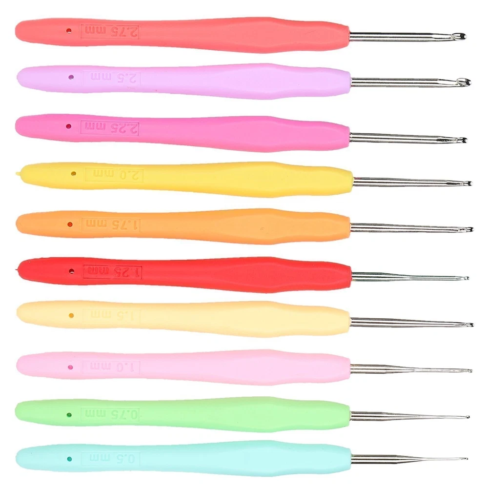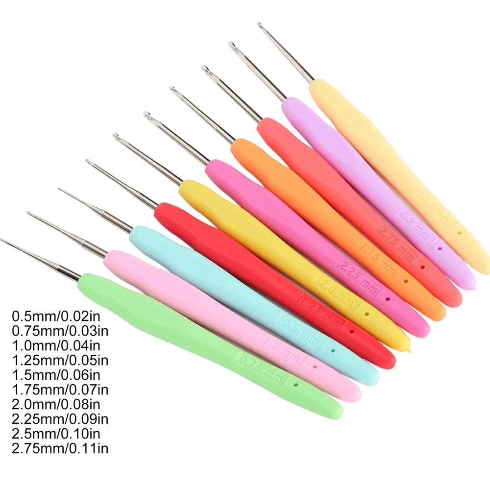 Feature: 1. The crochet hooks have comfortable and easy‑to‑grip handle, which can reduce or eliminate pain in the hand, wrist or finger. 2. Ideal for arthritic hands, you can crochet for a long time without feeling pain or cramping in your hands. 3. The ideal gift for grandmothers, moms, kids, beginners or advanced crochet lovers. 4. The smoothly crochet hook slides easily, producing clean surface item and avoiding hooking or splitting of the yarn. 5. Each hook is color‑coded and printed with letters and numbers for easy identification and has an independent place. Specification: Item Type: Crochet Hooks Kit Material: Iron+Rubber Color: As Picture Shown Crochet Hooks Size: Approx. 0.5mm/0.02in, 0.75mm/0.03in, 1.0mm/0.04in, 1.25mm/0.05in, 1.5mm/0.06in, 1.75mm/0.07in, 2.0mm/0.08in, 2.25mm/0.09in, 2.5mm/0.10in, 2.75mm/0.11in Weight: Approx. 134.0g/4.7oz Usage: Household, Knitting Package List: 10 x Crochet Hooks Kit