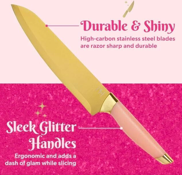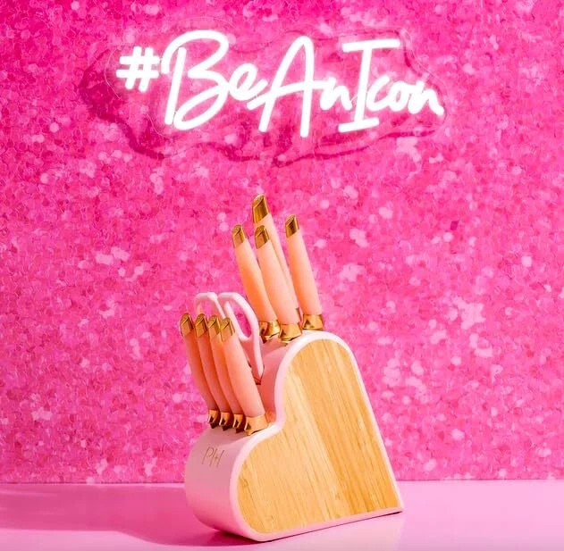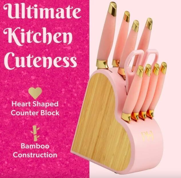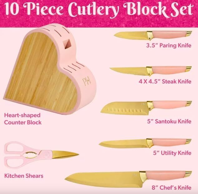 10 Piece Cutlery Block Set, Pink Knife Set