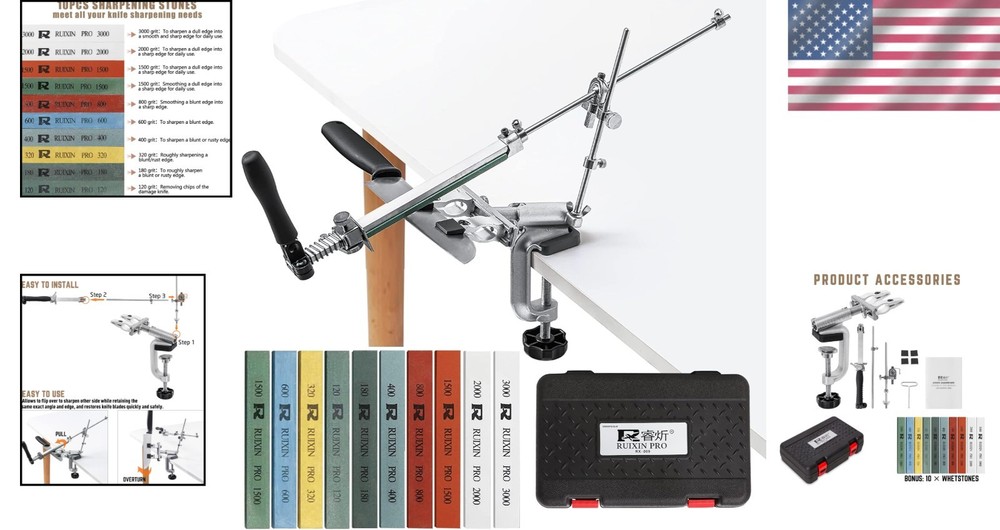 10-Piece Whetstone Knife Sharpening Kit - Professional Edge Sharpener with Clamp ‹ › ‹ › ‹ › ‹ › ‹ › ‹ › ‹ › ‹ › ‹ › 10-Piece Whetstone Knife Sharpening Kit Professional Edge Sharpener with Clamp Features: G-Clamp with Maximum Tightness: Our RX-0 Metal Fixed-angle Edge Sharpener features a robust G-Clamp that securely holds the sharpener onto tables, stoves, or other surfaces, providing stability during use. 360° Rotation Flip Design: This innovative feature allows you to easily flip the blade for sharpening both sides with a precise deviation of +/- 2°, adjusting quickly and safely with an easy-to-screw mechanism. Unparalleled Safety: Designed with utmost consideration for safety, the handle is positioned above the blade, ensuring your hands remain safely away while sharpening. 10 Premium Quality Whetstones: The kit includes 10 carefully selected whetstone grits ranging from 120# to 3000#. Whether repairing old knives or polishing new ones, these stones are hard enough to handle S30V steel. Multipurpose Use: Ideal for sharpening a variety of knives including peeling, kitchen, hunting, chef, and barbecue knives, along with scissors, chisels, and razors. Achieve a razor-sharp edge in mere seconds! Why Choose Our 10-Piece Whetstone Knife Sharpening Kit? Experience the luxury of professional-grade knife sharpening with our 10-Piece Whetstone Knife Sharpening Kit. The durable aluminum alloy construction ensures longevity, while the innovative clamp design guarantees maximum stability as you restore your blades to their original glory. With a range of whetstones suited for all sharpening needs, you can elevate your culinary experiences or tackle any cutting task confidently. Enjoy precision, safety, and quality by choosing our kit, backed with a worry-free replacement guarantee for any damaged stones. Order yours today for perfecting your knives with ease and elegance. Shipping Free & Fast Shipping - We offer free shipping to most of the USA with a normal delivery time of 3-10 businessdays. However, due to various situations, additional delivery time (up to 3 weeks) may be required for some items. Alternative Carriers - We may use alternative carriers (e.g. USPS, FedEx, UPS, etc.) to ensure your package arrives safely and on time. Due to the use of multiple carriers, we are unable to provide a tracking number automatically. Handling Time - Orders are processed and shipped within 1-5 business days of receiving cleared payment. Shipping Restrictions - Shipping to Alaska, Hawaii, Puerto Rico, Guam, and other US territories may incur shipping charges or delivery restrictions. Please contact us before ordering, or your order can be refunded/cancelled. State Restrictions - There may be restrictions based on your state of purchase. For example, certain items may not be shipped to California due to state regulations. Contact for Tracking Updates - If you require tracking updates or have any concerns about the delivery of your order, please feel free to contact us, and we will be happy to assist you. Return Please see our ebay return policy. We do not accept return on most products. This is to avoid customers mis-using ebay returns. All sales are final. Please be sure to check the return policy listed at the top of the listing. In rare cases, we may accept returns, if the buyer pays both ways shipping and 20% restocking fee. If you are un-sure of return policy of a particular item, please ask before buying. Payment We accept all major credit cards, PayPal, and Apple Pay for your convenience. Your payment information is secure and encrypted to ensure a safe and seamless transaction. Please complete your payment within 3 days of purchase to avoid any delays in shipping. Feedback Your feedback is extremely important to us. We strive to provide the best products and customer service possible. If you are satisfied with your purchase, please take a moment to leave us a positive review. If you have any concerns or issues with your order, please contact us before leaving negative feedback. We are committed to resolving any problems and ensuring your satisfaction. Contact Us If you have any questions or concerns, please feel free to reach out to our customer support team. You can contact us through the eBay messaging system. We are available Monday to Friday, 9:00 am to 5:00 pm EST, and we will do our best to respond to your inquiry within 24 hours. Buy it now and enjoy a pleasant shopping experience! UPC: Not Set Model: Not Set Unit Quantity: 1 Material: Aluminum,Whetstones Features: With Handles,With Knife Sharpener,360° Rotation,Fixed-Angle Design,G-Clamp,Safety Design Brand: Unbranded Type: Sharpening System Color: Silver MPN: Not Set Country/Region of Manufacture: Not Set Making Method: Not Set Unit Type: Unit