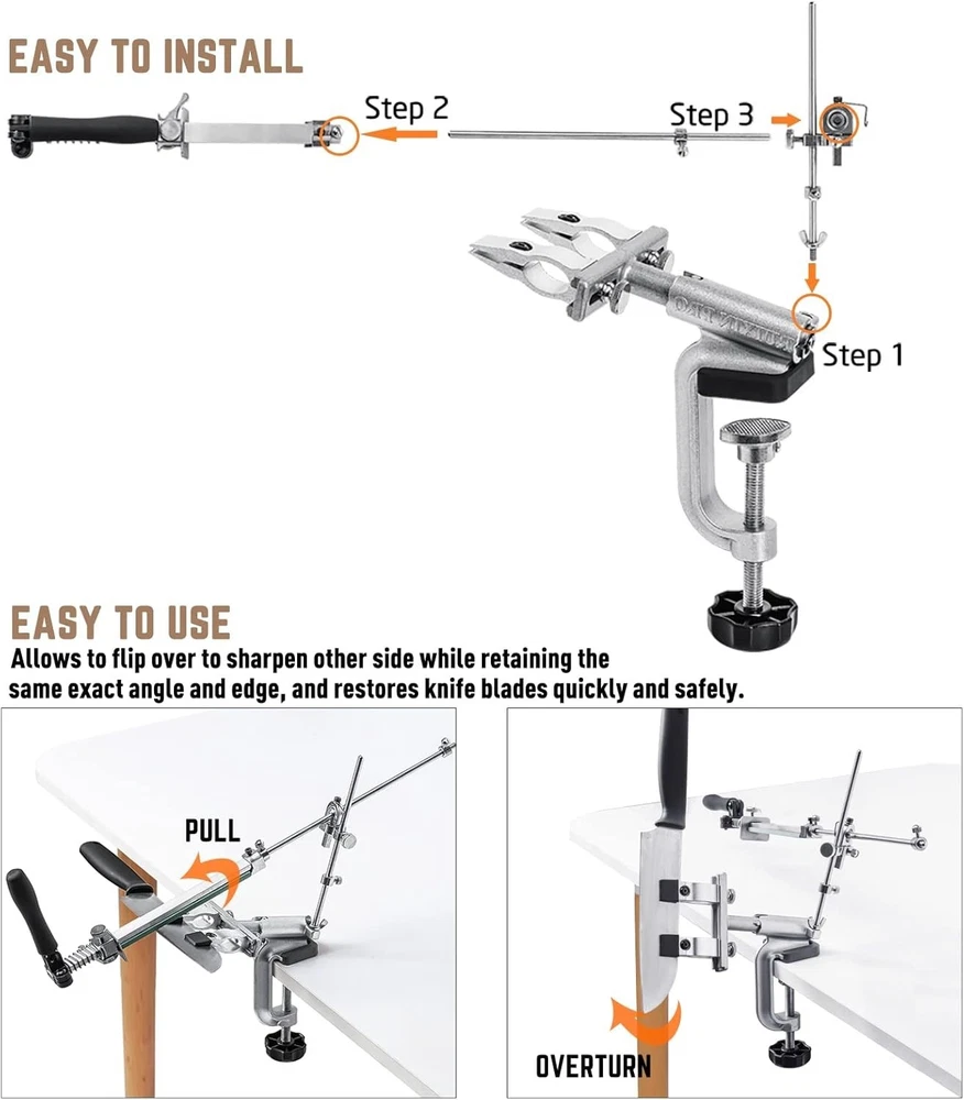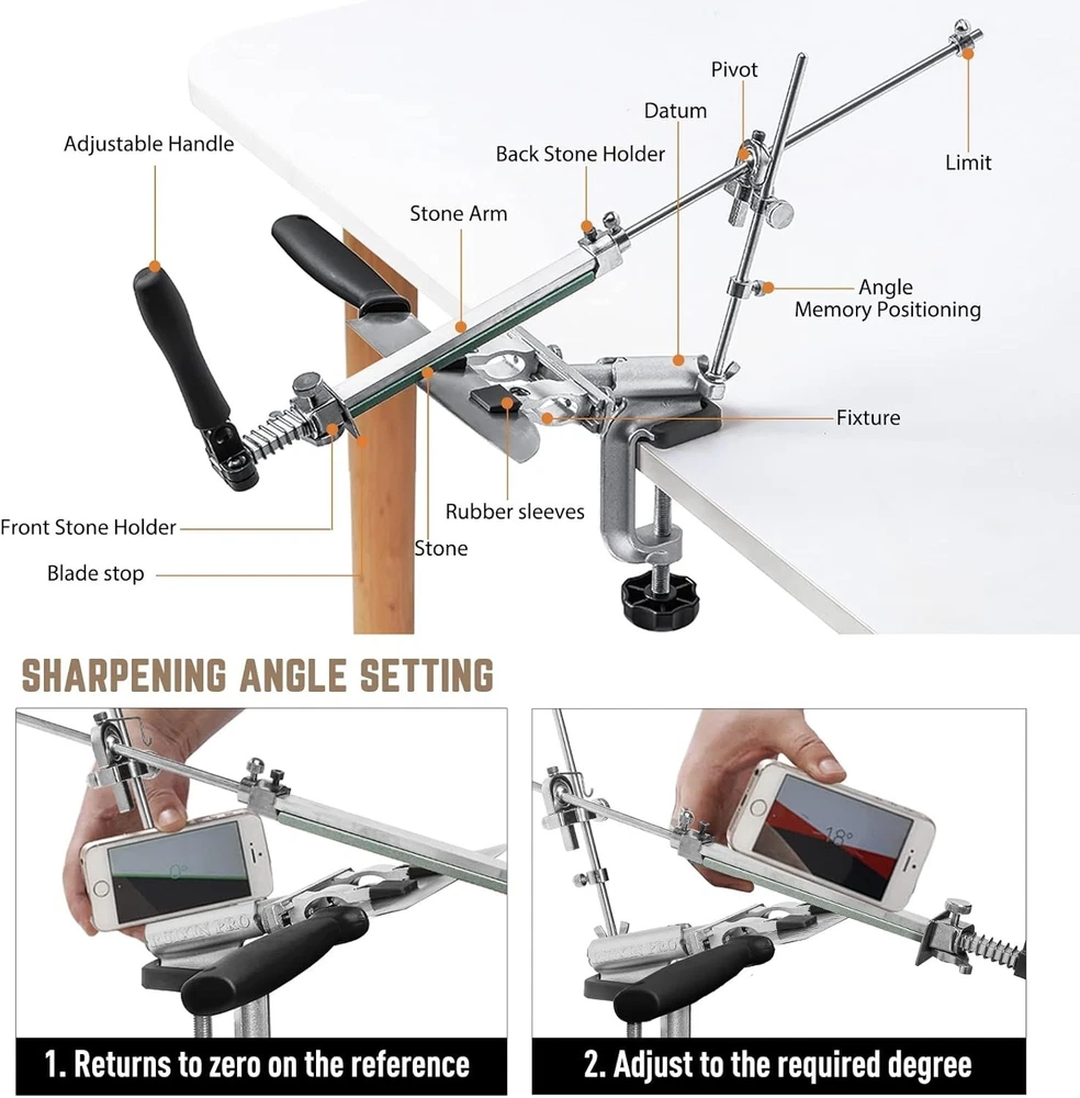 Brand: Unbranded Color: Silver gtin13: Does not apply Product Dimensions: 4.72"l X 2.76"w X 1.18"h Grit Type: Fine Type: Sharpening System UPC: Does not apply Item Weight: 1.68 Kilograms Number Of Items: 1 Features: With Handles, With Knife Sharpener, 360° Rotation, Fixed-Angle Design, G-Clamp, Safety Design Material: Aluminum, Whetstones