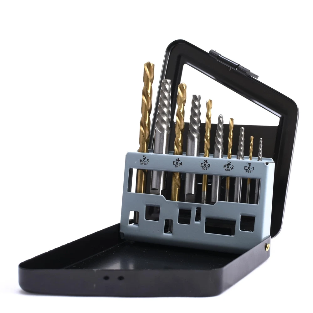 10-Piece Screw Extractor & Left-Hand Drill Bit Kit for Easy Removal