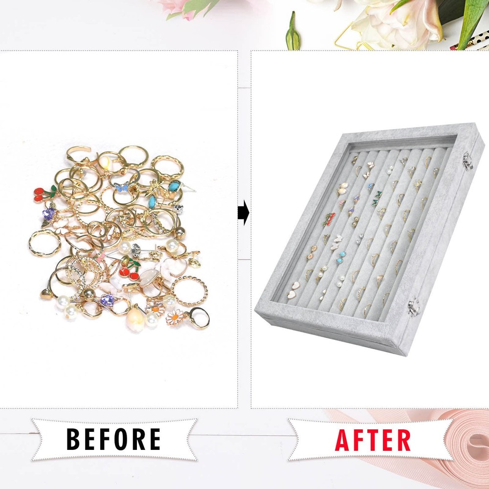 Regarding us: We focus on product quality and also pay attention to product details. We hope to provide you with high-quality and affordable products. At the same time, we also hope to provide more services to meet our users. Please trust us, it will be a good choice. Product features: High quality velvet jewelry box, finely crafted, structurally sturdy, and aesthetically pleasing. The elegant Jewel Box perfectly displays your jewelry while protecting them from dust and scratches. The transparent glass cover makes it easy for you to quickly find the jewelry you are looking for. Perfect for showcasing your jewelry at a jewelry store or storing jewelry at home. You can also give it as a holiday gift to someone in need. Product specifications: Material: High grade velvet, glass, medium density fiberboard. Windows: Glass Size: 13.9 x 9.6 x 2 inches Packaging list: 1 x Jewelry display tray. Product features: The 10 slot gray jewelry display organizer is made of composite boards, wrapped in soft long velvet both inside and outside. It feels softer and more comfortable than short velvet, and can effectively protect your precious jewelry and accessories from scratches and wear. Design concept: The 10 slot jewelry display tray has 10 long slots, all of which are covered with very soft velvet. Each slot can store approximately 15 rings or earrings. Through the transparent glass cover design, you can quickly discover the rings, earrings, brooches, buttons, and other valuable items you are looking for. Two safety locks can effectively prevent the cover from being easily opened. Usage scenario: The 10 slot accessory display tray is very suitable for displaying jewelry and accessories in retail stores or display cabinets, and is also suitable for home use, making jewelry neat and orderly. It can also be given as a gift to women on Valentine's Day, Mother's Day, Thanksgiving, Christmas, birthdays, or other holidays. Focusing on quality: We have strict standards for material selection and clear inspection standards in the production process to provide customers with satisfactory products as much as possible. The accessory display storage box measures approximately 13.8 x 9.5 x 2 inches and is suitable for display cabinets, dressing tables, or drawers. Sincere Service: We focus on product quality and hope that our products can meet your needs. At the same time, we also hope to provide you with more services. Please feel free to contact us if you have any needs.